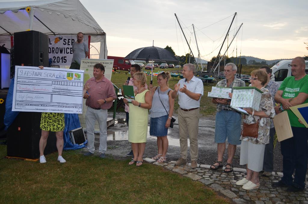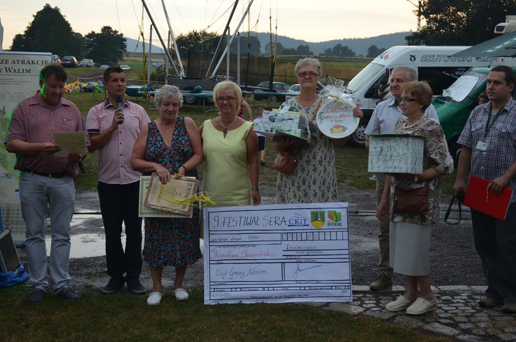 Tegoroczny Festiwal, jak zawsze, obfitował w znakomite sery i potrawy z sera, bo też taka jest jego rola. Odbyły się również dwa konkursy – na najlepszy ser i najlepszą potrawę z sera. Jury nie miało łatwego zadania w wyborze najlepszej potrawy, dlatego też wszyscy uczestnicy otrzymali cenne nagrody w postaci bonów towarowych, a Pani Stanisława Skowrońska za zajęcie I miejsca w konkursie na najlepszą potrawę z sera – zupę Leśna przygoda z serem i grzybami, otrzymała bon od Wójta Gminy Walim na kwotę 2.000,00 zł z przeznaczeniem na wyjazd turystyczny. Jury Rady Gminy Walim przyznało wyróżnienie za roladki po Dziećmorowicku Pani Janinie Nowak. Wszystkim uczestnikom dziękujemy za przygotowanie wspaniałych smakołyków. Wielką atrakcją festiwalu były mała i duża sowa, a największym powodzeniem cieszyła się słynna już zupa serowa Wójta Gminy Walim. Serdecznie dziękujemy sponsorom nagród – Gminie Walim, CKiT w Walimiu, DODR Wrocław, Agencji Rynku Rolnego.