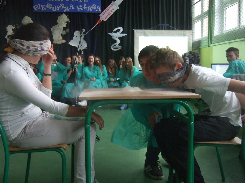 Otrzęsiny klas pierwszych w naszym Gimnazjum to już wieloletnia, ciesząca się niesłabnącą popularnością i corocznym zainteresowaniem tradycja. Również w tym roku szkolnym uczniowie klas trzecich stawili czoła temu wyzwaniu.