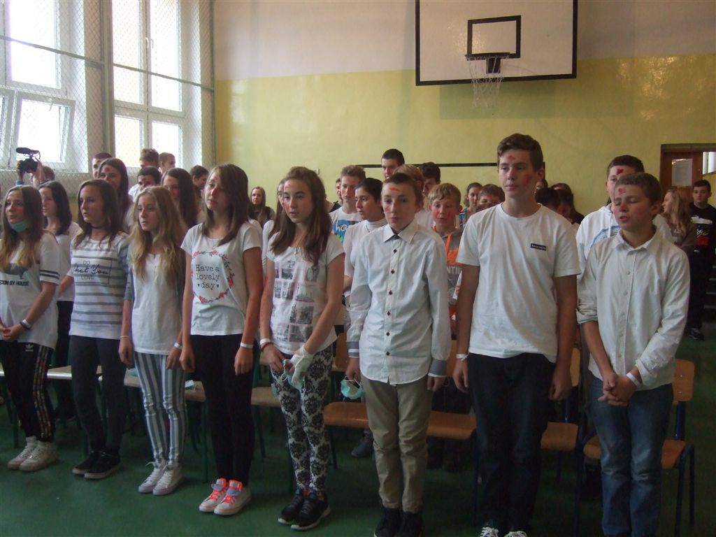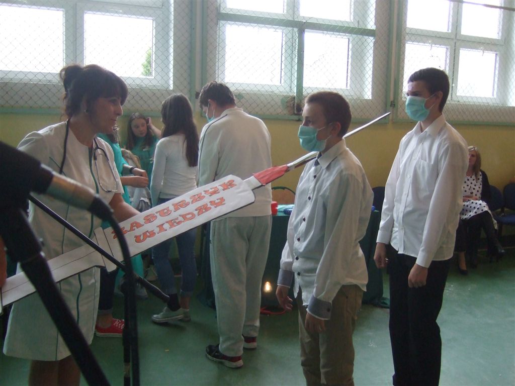 Po zakończeniu leczenia trzynastolatków, pani dyrektor Małgorzata Jarczok pasowała ich na pełnoprawnych uczniów Gimnazjum, którzy następnie, złożyli uroczyste przyrzeczenie.