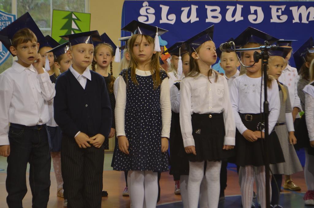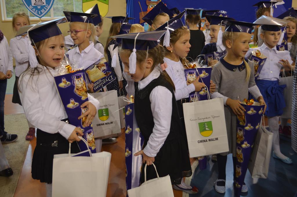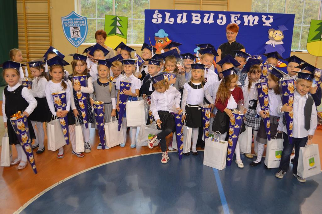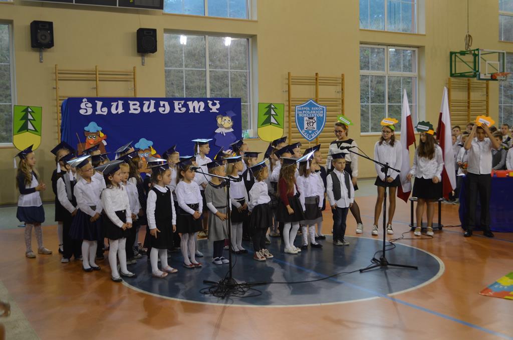 W odświętnie przystrojonej walimskiej hali sportowej 14 października 2015r. zebrał się niezły tłum. Wszyscy uśmiechnięci i uroczyście ubrani, a pośrodku oni – bohaterowie całego zamieszania – uczniowie klas pierwszych.