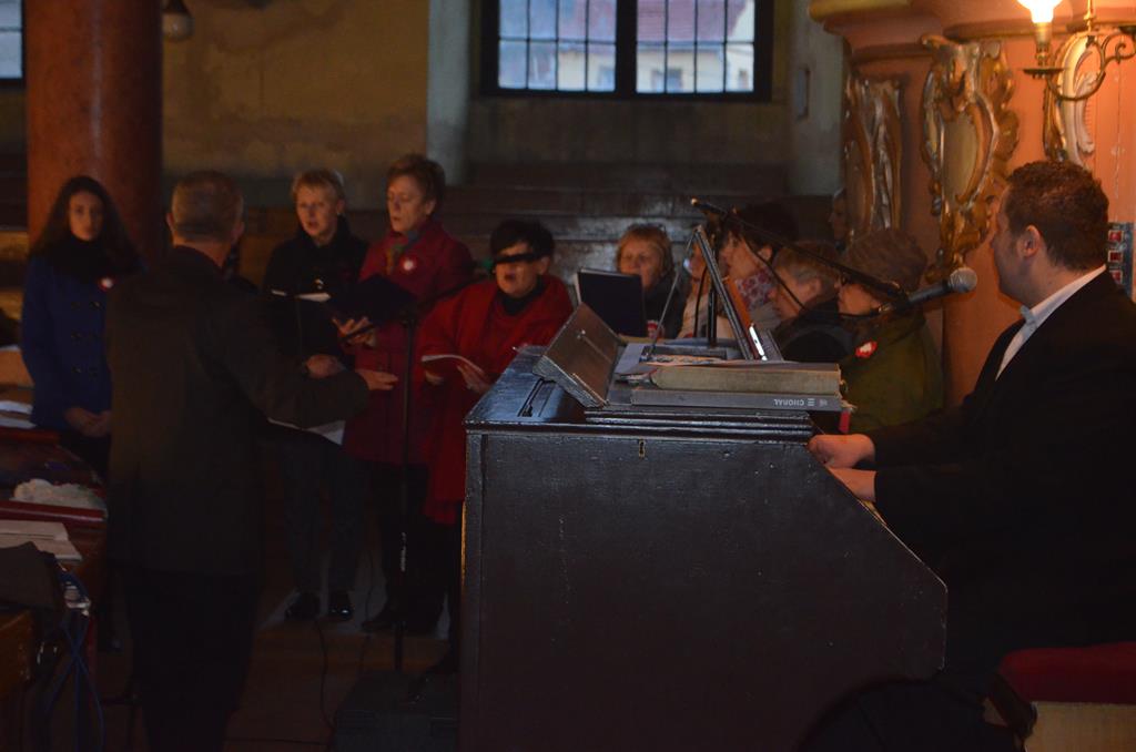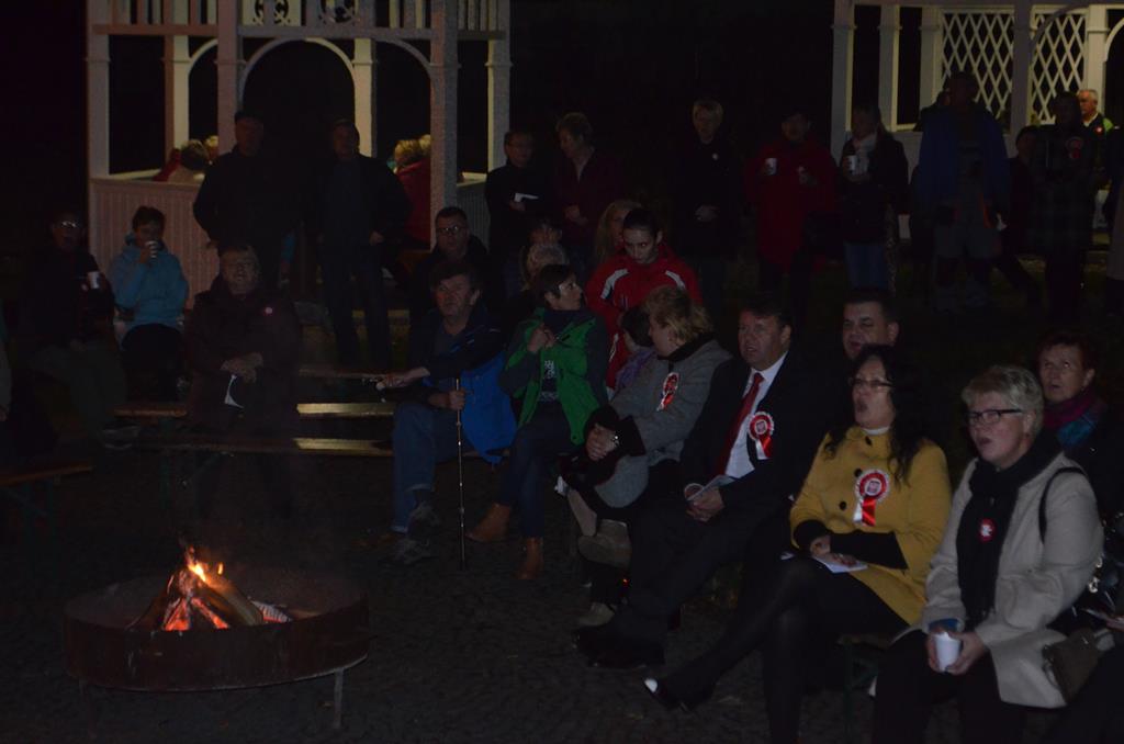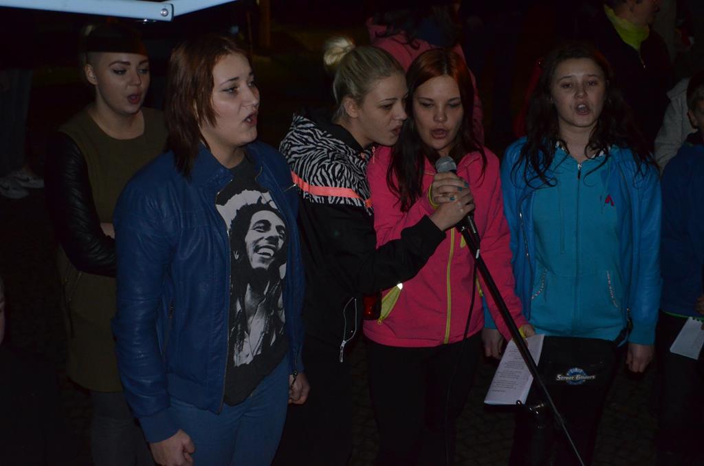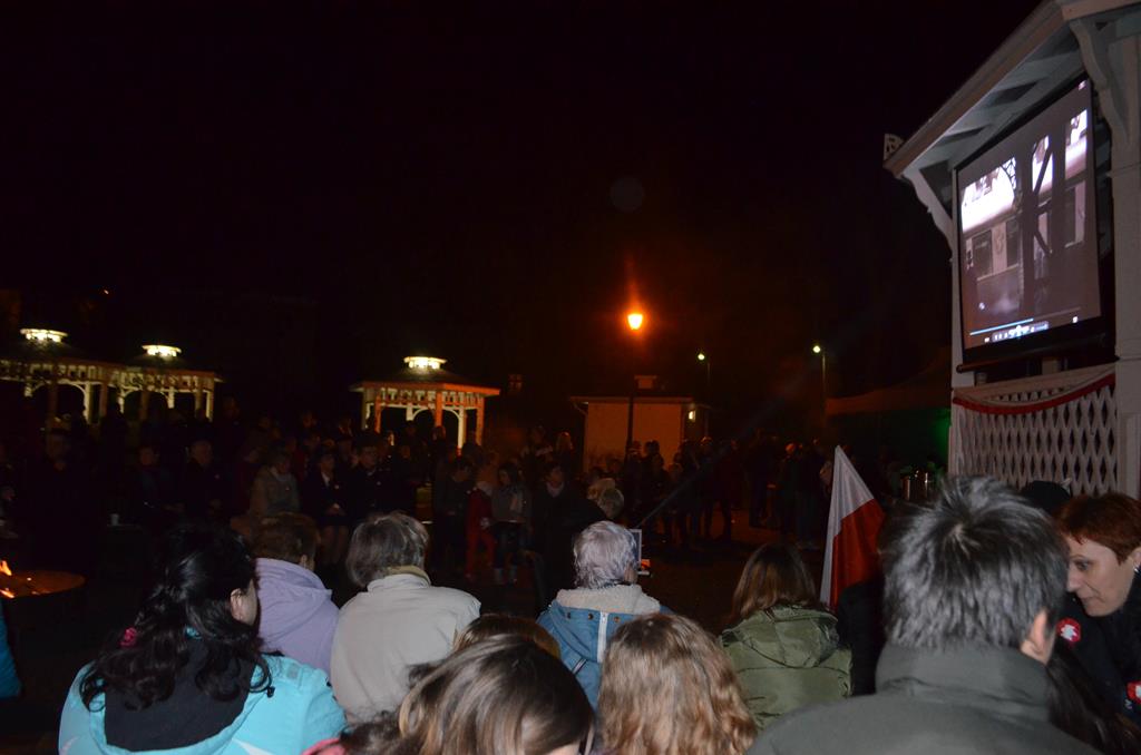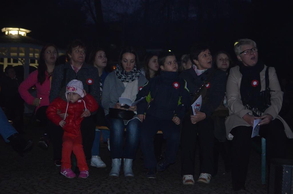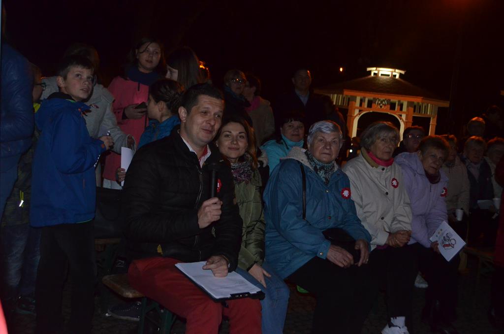 Po mszy świętej wszyscy zebrali się w Parku Jordanowskim, by wspólnie przy płonących ogniskach i dźwiękach muzyki, poczuć “ducha niepodległościowego” śpiewając pieśni patriotyczne. Wspólne świętowanie ułatwiały przygotowane śpiewniki oraz prezentacja multimedialna, na której wyświetlano teksty najpopularniejszych utworów. Uroczystości tradycyjnie rozpoczęto odśpiewaniem hymnu polskiego. Nie zabrakło także znanych pieśni – O mój Rozmarynie, Serce w Plecaku, Kadrówka, Pierwsza brygada, Przybyli ułani pod okienko, Wojenko, wojenko, Oka, oraz wielu innych wzruszających utworów. Nad oprawą muzyczną oraz artystyczną czuwał Krzysztof Gołębiowski oraz Alicja Bekas wraz z uczniami Publicznej Szkoły Podstawowej im. Janusza Korczaka z Jugowic. Przerwy pomiędzy pieśniami wypełnione były patriotycznymi wierszami recytowanymi przez dzieci oraz wyświetlanymi krótkimi animacjami, ukazującymi zmianę granic Polski oraz burzliwą historię naszego kraju.