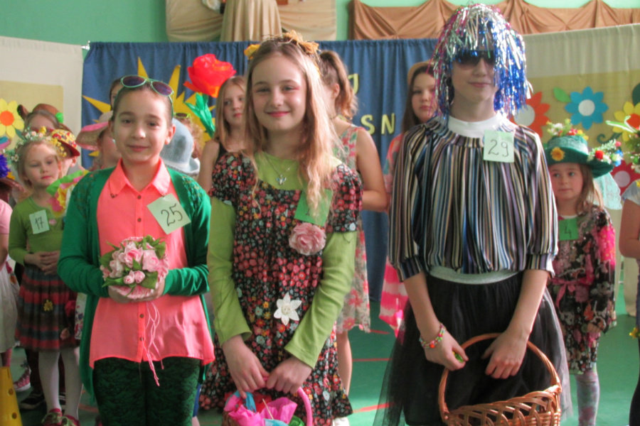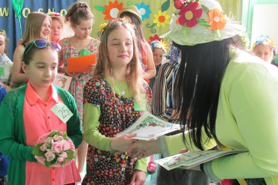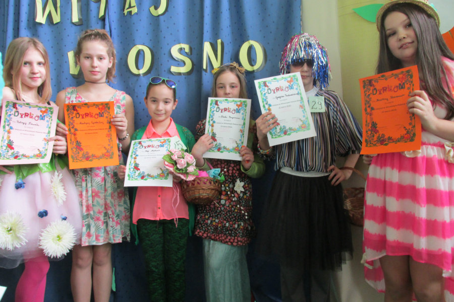 Cała społeczność szkolna stanowiła jury, które za pomocą kolorowych karteczek oddawało głos na swojego faworyta. Wszyscy uczestnicy pokazu otrzymali pamiątkowe dyplomy, a ich prezentacje zostały nagrodzone gromkimi brawami. Kolorami, które dominowały w przygotowanych strojach był żółty i zielony, dlatego wszyscy zatęskniliśmy za tym, aby świat za oknem przybrał już te radosne kolory, „bo zima, bo zima każdemu obrzydła. ”Byle do zielonej wiosny!