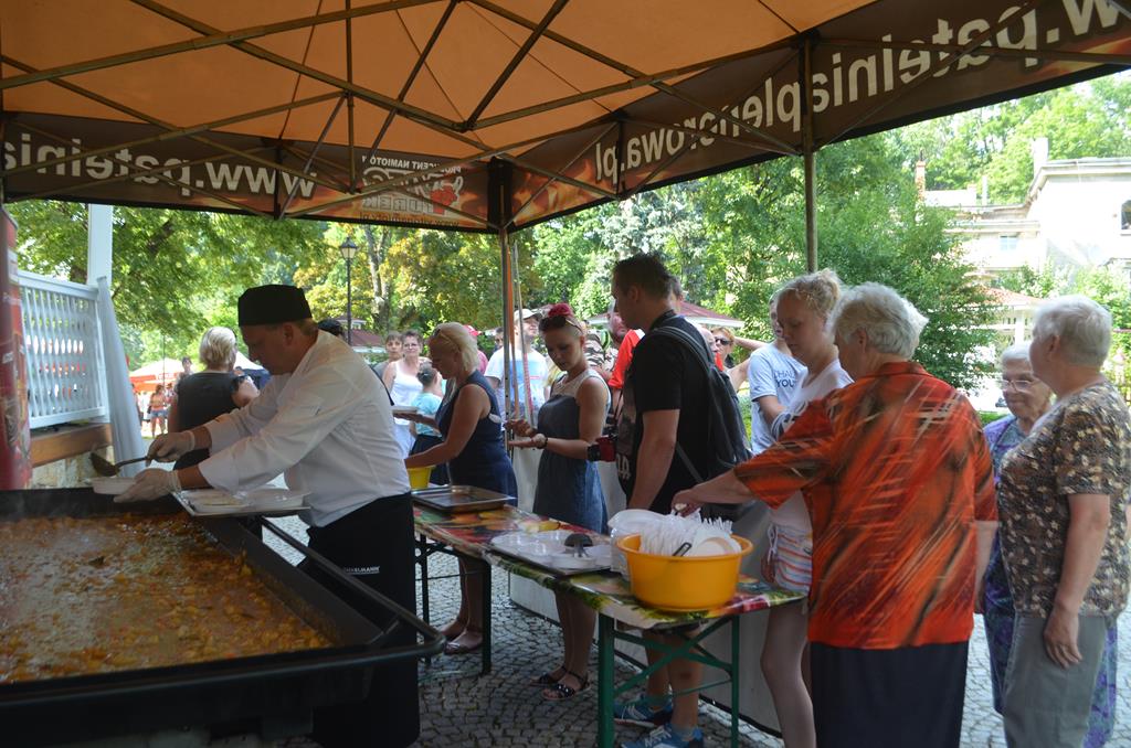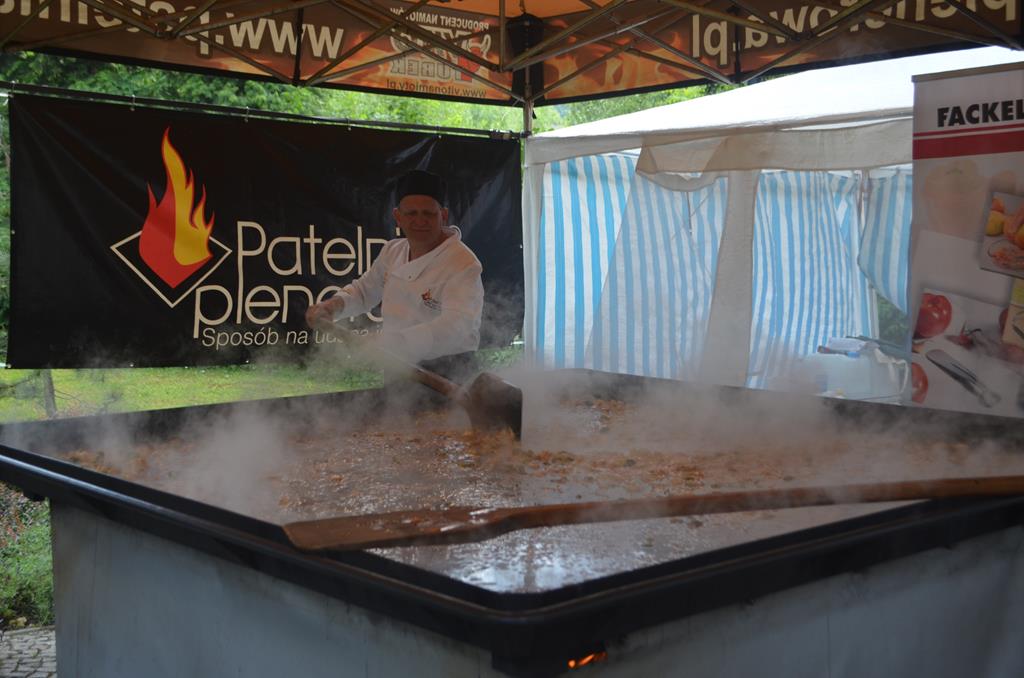 Nowością podczas tegorocznego festiwalu była wyjątkowych rozmiarów “Patelnia plenerowa”, na której kucharze przygotowywali “Walimski Gulasz Ziemniaczany”, by w godzinach popołudniowych częstować nim wszystkich zgromadzonych oraz kurtyna wodna przynosząca nieco ochłody, a także uciech – i to nie tylko najmłodszym.