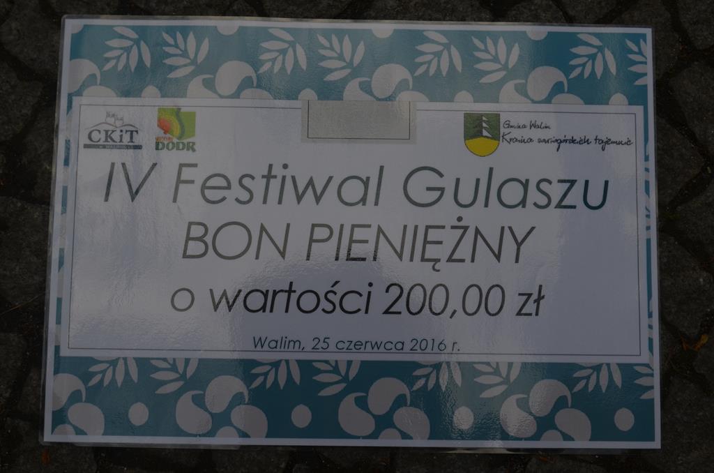 Wójt Gminy Walim Adam Hausman witając wszystkich przybyłych, oficjalnie rozpoczął festiwal, dając tym samym znak uczestnikom konkursu na najlepszy gulasz do przygotowywania wyjątkowych potraw. Podobnie jak w latach ubiegłych nie zabrakło ani chętnych ani pomysłów, gdyż aż przy siedemnastu stanowiskach konkursowych, żwawo uwijano się przy kociołkach, aby punktualnie na godzinę 16:00 potrawy były gotowe. Tradycyjnie, poza konkursem gulasz przygotowywał także Wójt Gminy Walim Adam Hausman – serwujący gulasz przyprawiany lubczykiem.