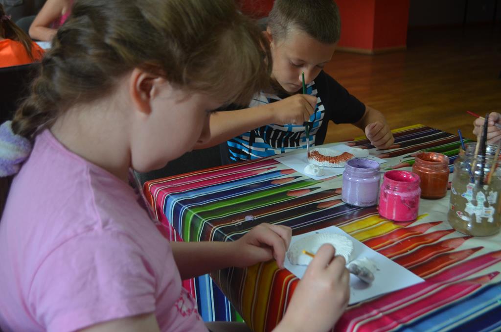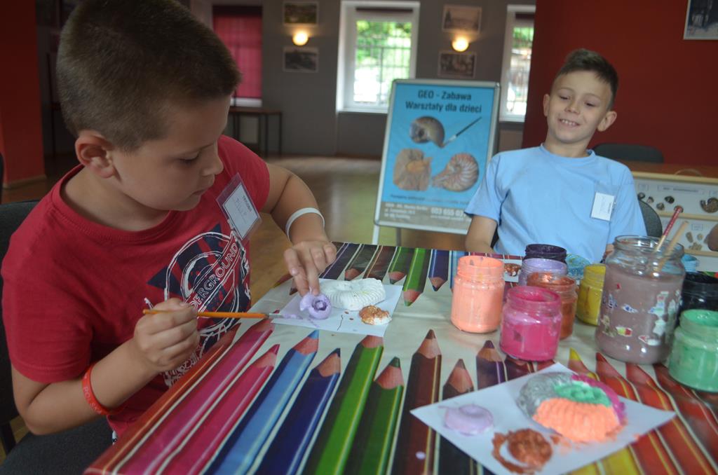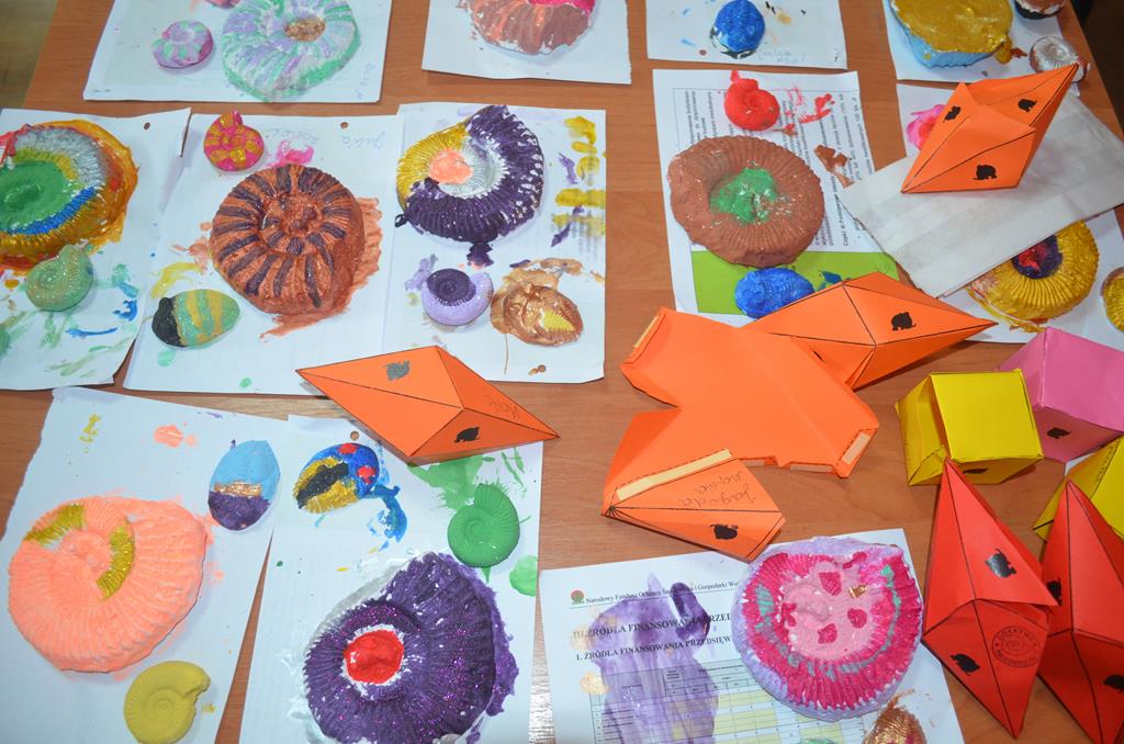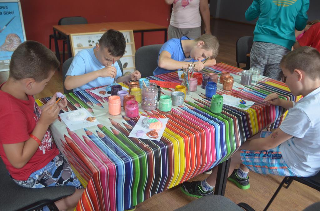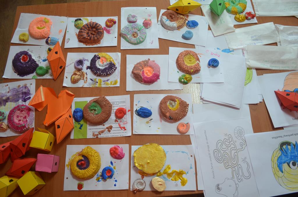 – WŁĄCZ FANTAZJĘ – dzieci malowały formy gipsowe zwierząt żyjących przed milionami lat, wśród nich pojawiły się: trylobity, amonity i łodziki.