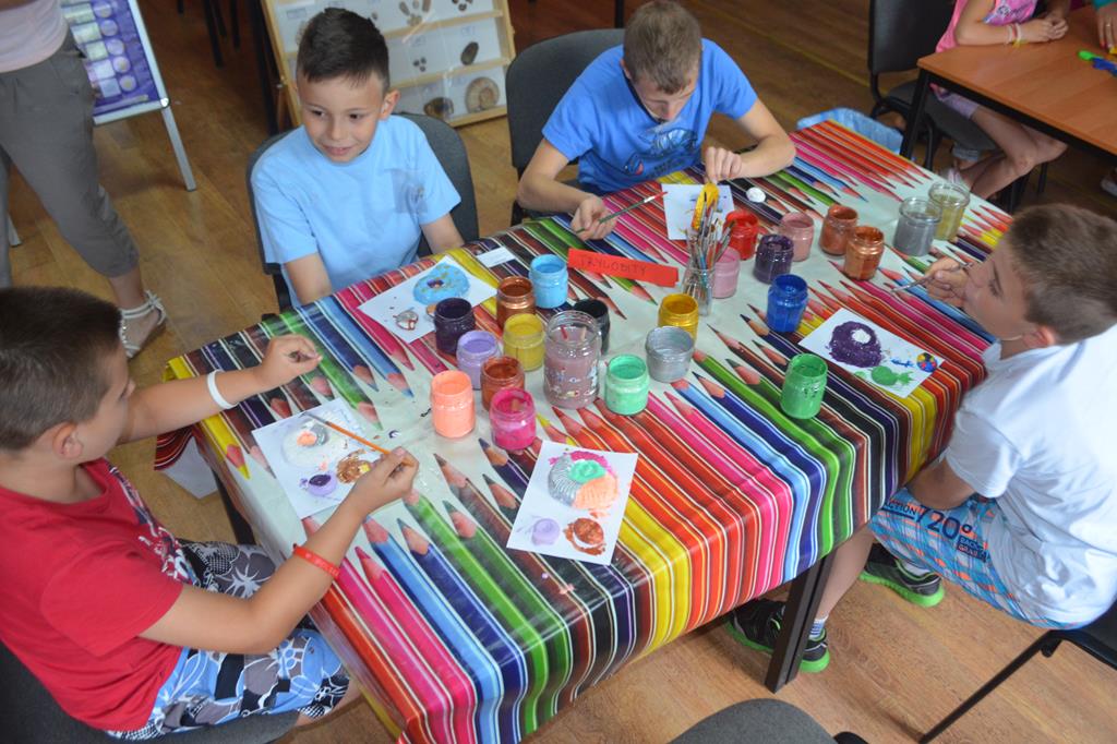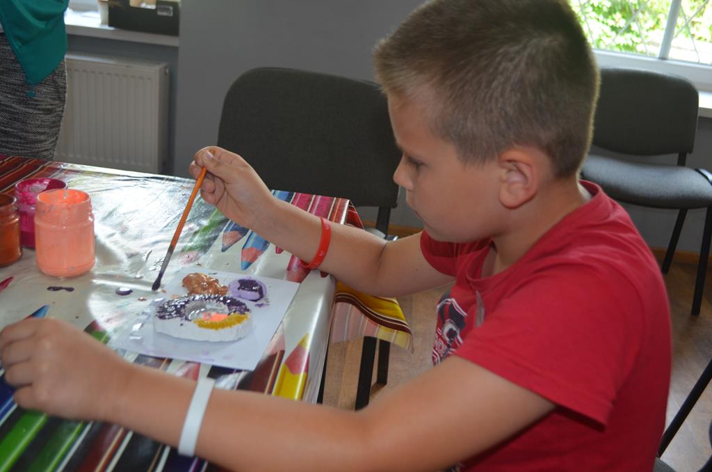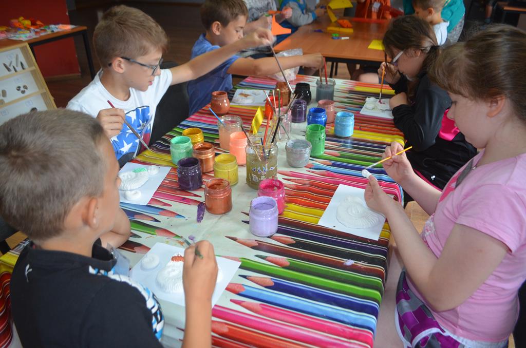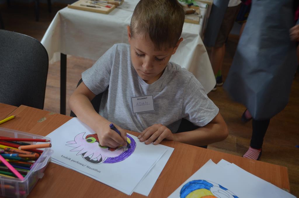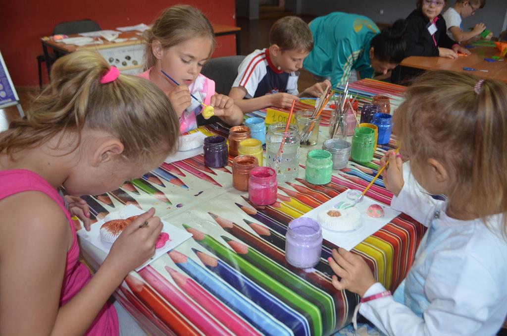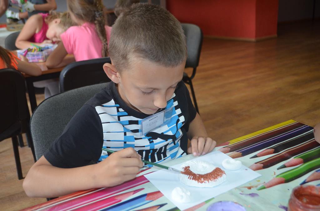 – WŁĄCZ FANTAZJĘ – dzieci malowały formy gipsowe zwierząt żyjących przed milionami lat, wśród nich pojawiły się: trylobity, amonity i łodziki.