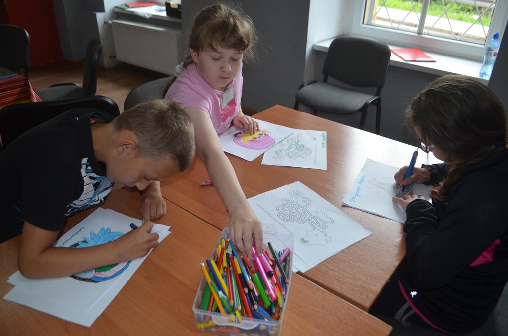 – RUSZ GŁOWĄ – przy tym stanowisku grupa badaczy trudziła się łamigłówkami, labiryntami, malowankami tematycznymi.