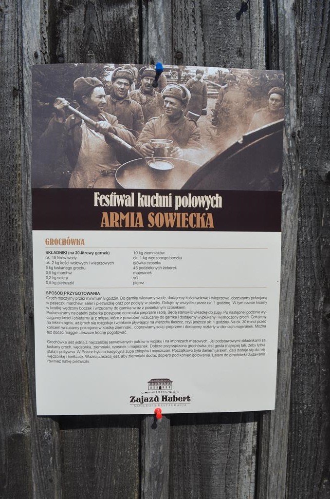 Wszystkim przybyłym oprócz darmowej strawy serwowano również lekcję historii, bowiem można było spróbować produktów kuchni polowej w wydaniu sowieckim smakując grochówkę na bogato. LWP 1945 raczyło wszystkich kapuśniakiem, zaś porcje wydawane przez armię napoleońską były magiczną miksturą zwaną „Le Bouilli”. Na koniec armia carska wydawała smakowitą soliankę na kwaśno i słono. Warto podkreślić, iż wszystkie serwowane potrawy przygotowane były według tradycyjnych i oryginalnych przepisów wojskowych kucharzy.