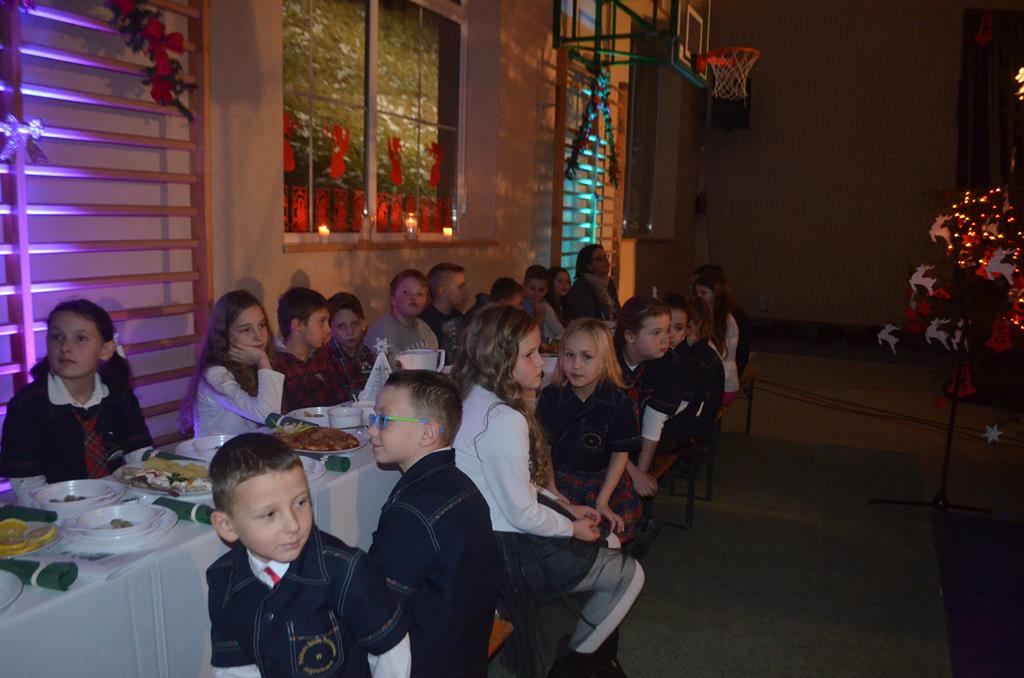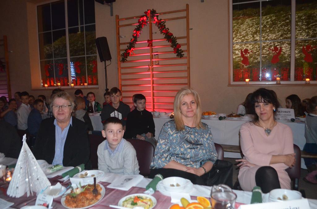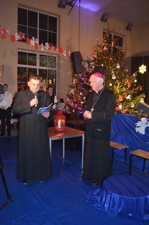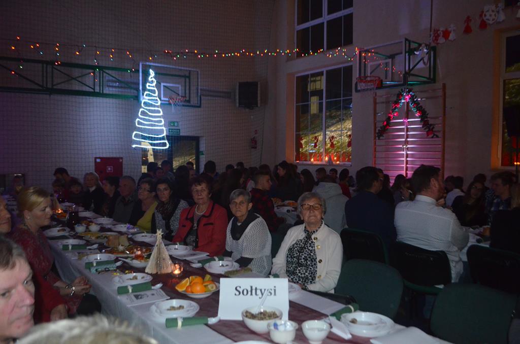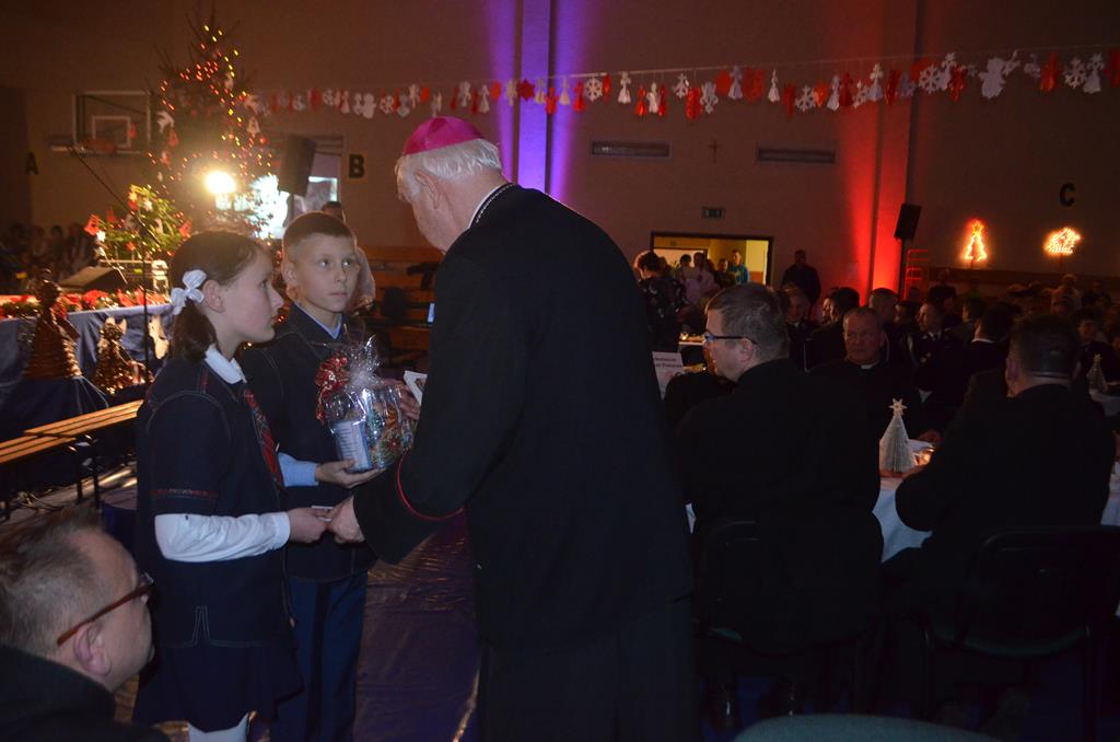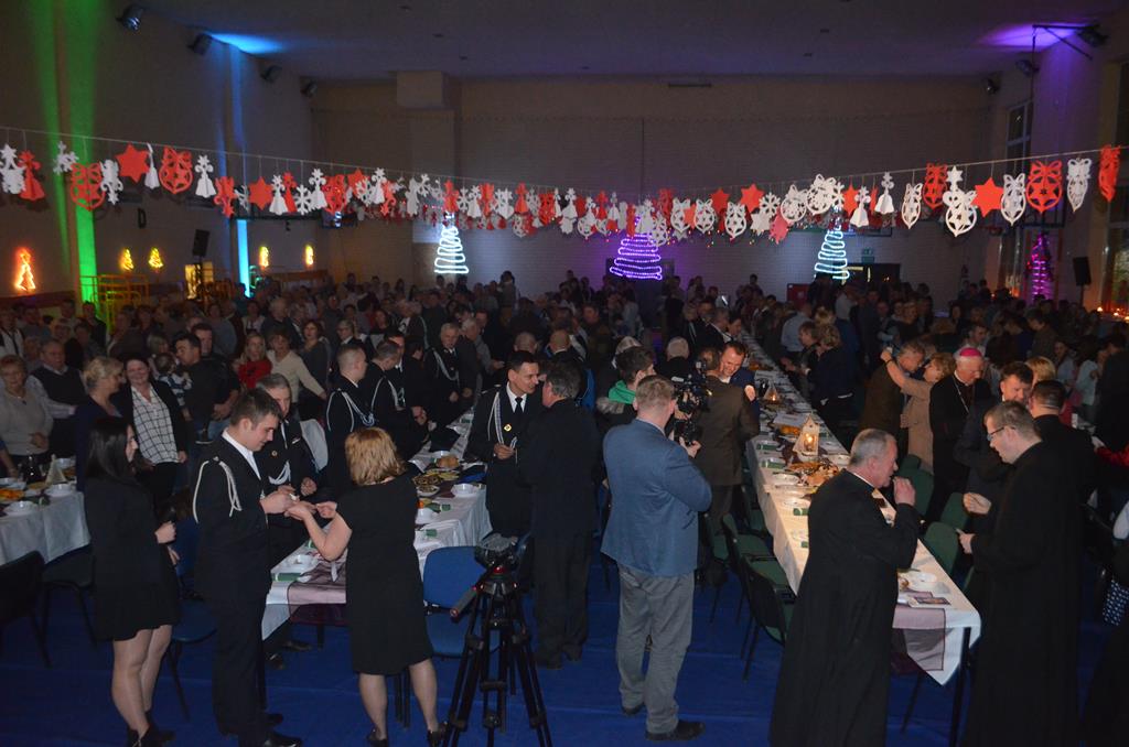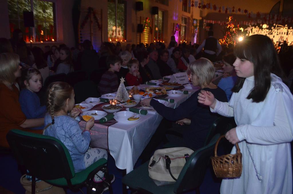 Po nabożeństwie wszyscy udali się do świątecznie przystrojonej hali sportowej w Centrum Sportu i Rekreacji, by wspólnie odczuć czar i magię nadchodzących świąt. Przy udekorowanych stołach, zastawionych tradycyjnymi potrawami wigilijnymi, nastąpiło błogosławieństwo wszystkich przybyłych przez księdza Biskupa, po którym połamano się symbolicznym opłatkiem. Dzieci z Publicznej Szkoły Podstawowej im. Janusza Korczaka w Jugowicach przygotowały jasełka, podczas których przypomniały obecnym historię narodzin Jezusa. Przepiękna sceneria, profesjonalna oprawa artystyczna oraz pełna zaangażowania gra aktorska małych mieszkańców gminy, wywoływały zarówno emocje zachwytu, jak i wzruszenia.