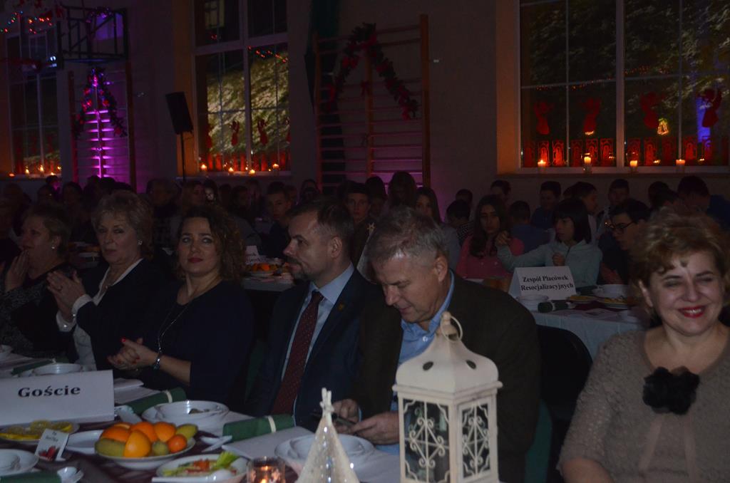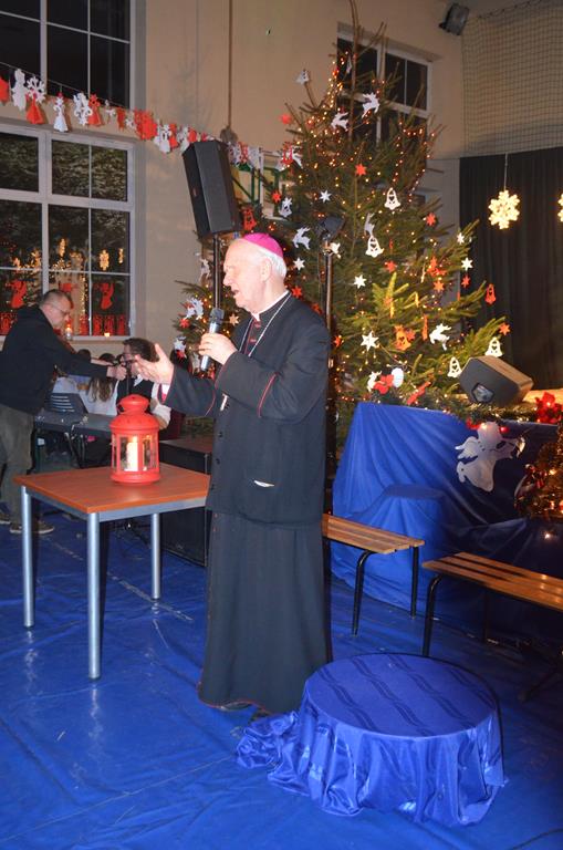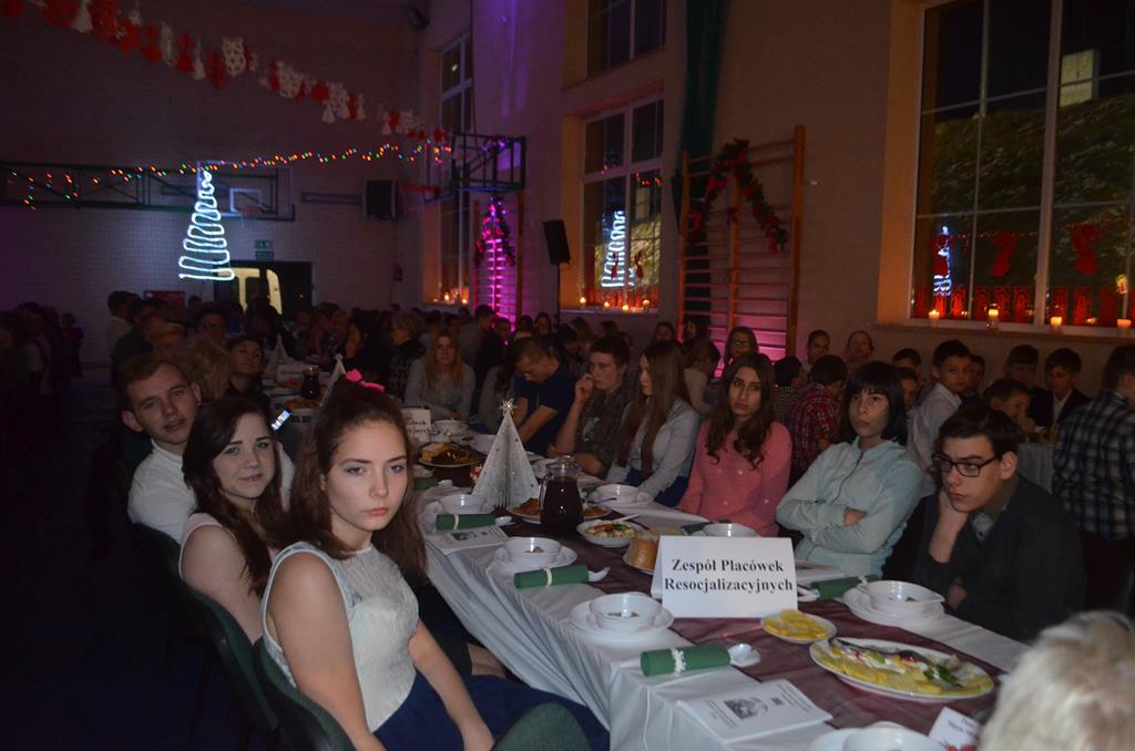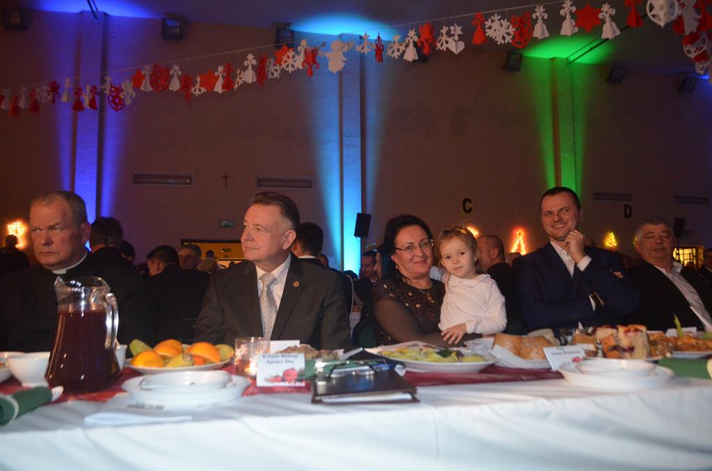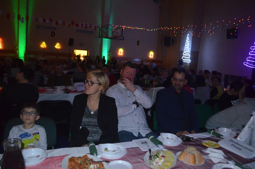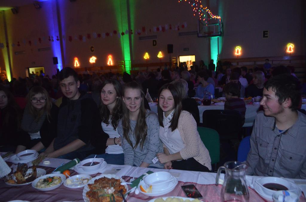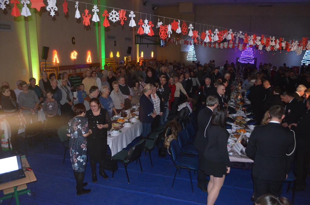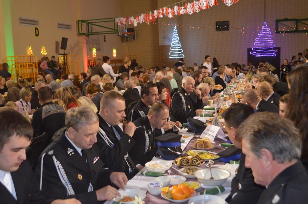 Po nabożeństwie wszyscy udali się do świątecznie przystrojonej hali sportowej w Centrum Sportu i Rekreacji, by wspólnie odczuć czar i magię nadchodzących świąt. Przy udekorowanych stołach, zastawionych tradycyjnymi potrawami wigilijnymi, nastąpiło błogosławieństwo wszystkich przybyłych przez księdza Biskupa, po którym połamano się symbolicznym opłatkiem. Dzieci z Publicznej Szkoły Podstawowej im. Janusza Korczaka w Jugowicach przygotowały jasełka, podczas których przypomniały obecnym historię narodzin Jezusa. Przepiękna sceneria, profesjonalna oprawa artystyczna oraz pełna zaangażowania gra aktorska małych mieszkańców gminy, wywoływały zarówno emocje zachwytu, jak i wzruszenia.
