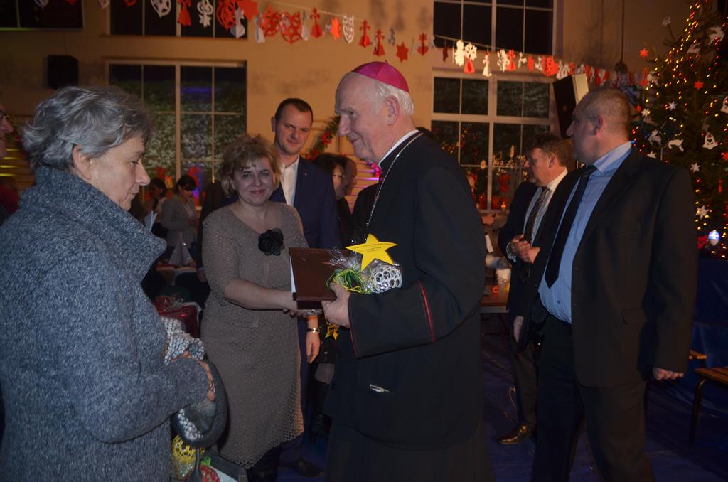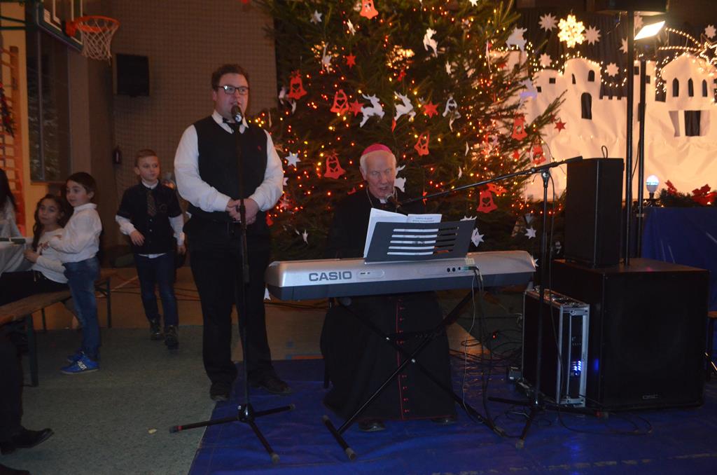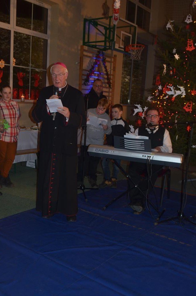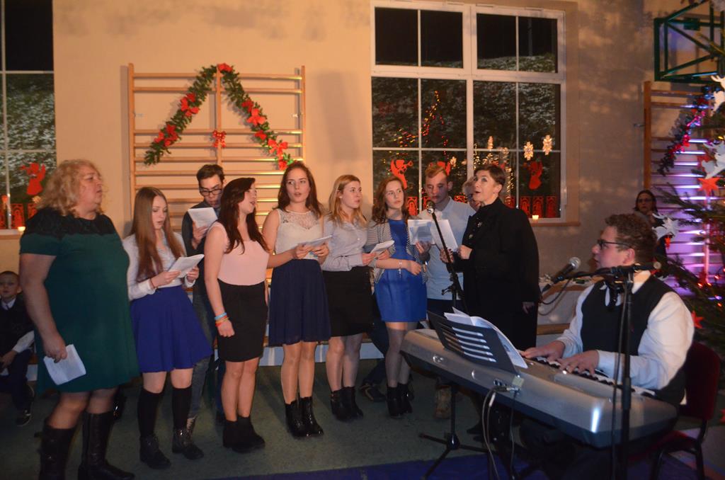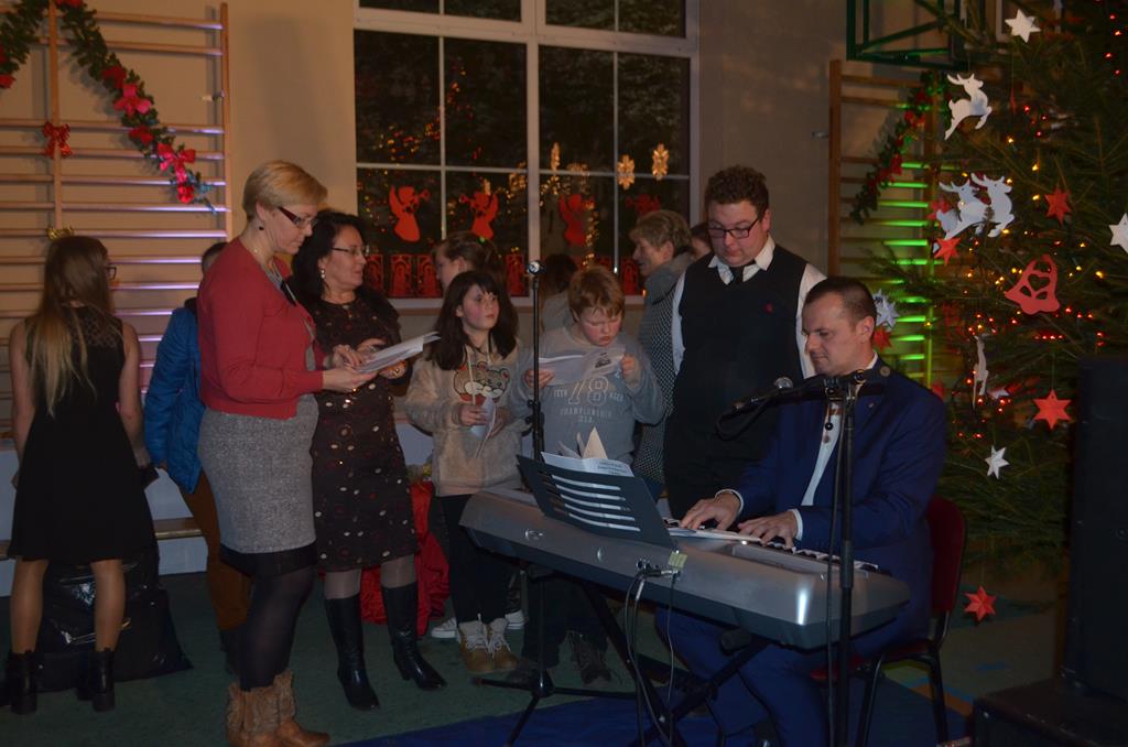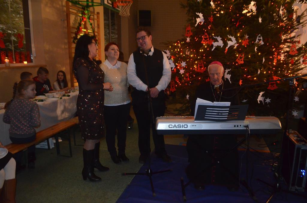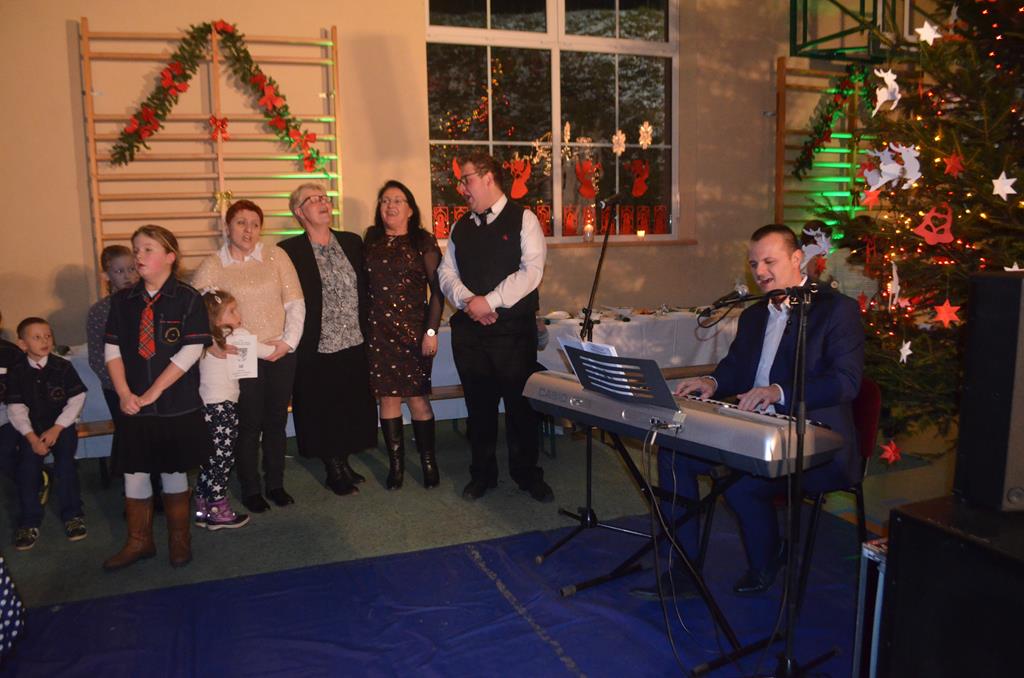 Było też wspólne śpiewanie pastorałek, do których akompaniował na pianinie Krzysztof Gołębiowski, a także Jego Ekscelencja Ignacy Dec, Wicewojewoda Kamil Krzysztof Zieliński oraz ku największej uciesze wszystkich zgromadzonych, ośmioletnia Jeżynka. Po raz kolejny ks. Biskup mile zaskoczył wszystkich mieszkańców Gminy Walim, tekstem odśpiewanej pastorałki, opowiadającej o naszych włodarzach i zaproszonych gościach. Utwory te stały się już tradycją, podobnie jak nasze Bożonarodzeniowe Spotkanie Wigilijne.