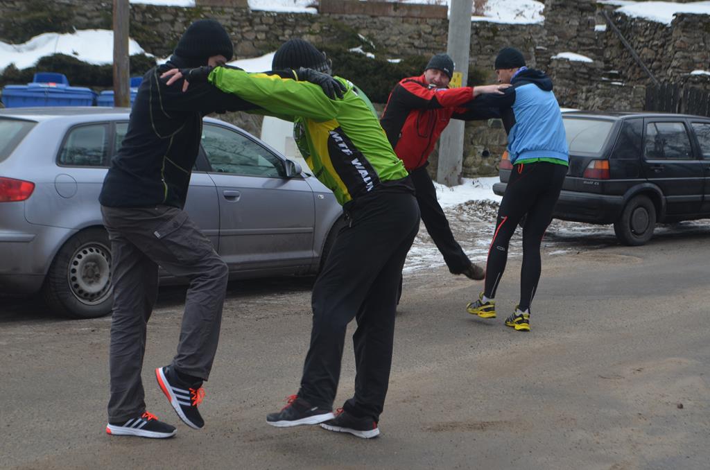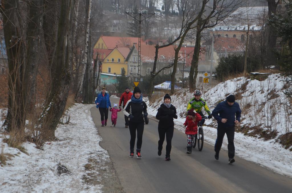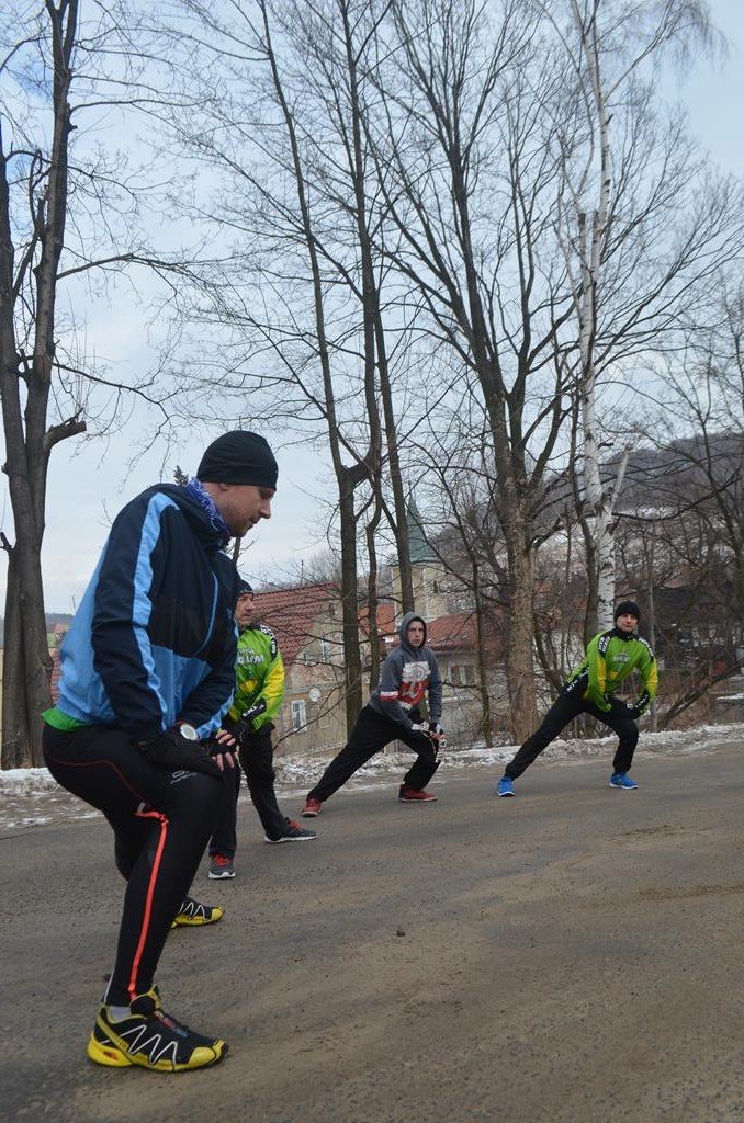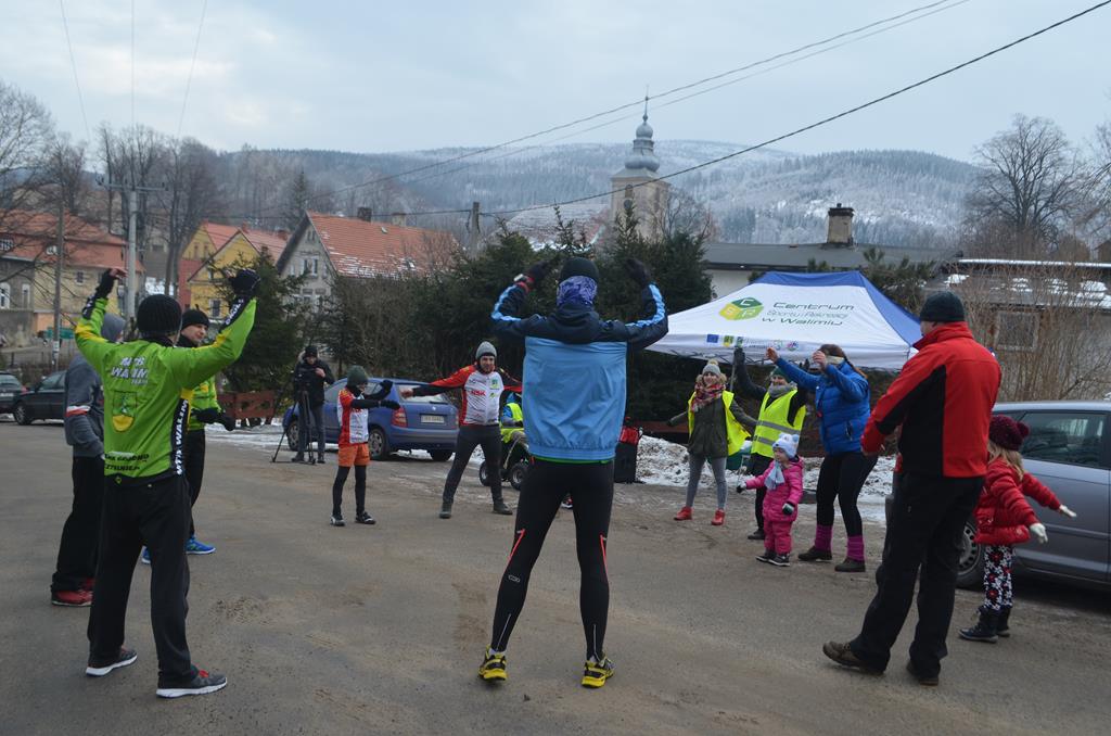 Punktualnie o godzinie 11:00 wszyscy zawodnicy, w wieku od lat 3 do 55 odbyli profesjonalną rozgrzewkę, poprowadzoną przez Aleksandra Sobieraja, by po chwili móc sprawne pokonać urokliwą Walimską trasę.