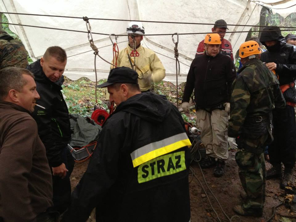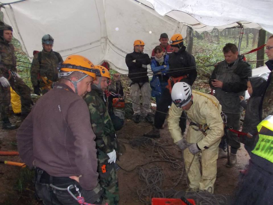 W ubiegłą sobotę i niedzielę odbył się w Walimiu VI Zjazd Eksploratorów. W sobotni poranek uczestników przywitał ulewny deszcz i przenikliwe zimno, co w perspektywie spędzenia całego dnia w terenie nie napawało optymizmem. Wątpliwości zostały szybko rozwiane i zorganizowane ekipy ruszyły realizować zadania. Pierwsza grupa przy pomocy wykrywaczy metali i wsparciu technologii GPS penetrowała zbocze góry. Ciekawostka jest to, że do poszukiwań użyto smartofonów wyposażonych w specjalne aplikacje. Druga grupa miała okazję obejrzeć sztolnię nr 3 na Soboniu. Tutaj potrzebne były silne nerwy by przy pomocy Grupy Poszukiwawczo Ratunkowej Państwowej Straży Pożarnej z Wałbrzycha zjechać na linach do tajemniczej sztolni. Ostatnia grupa rodzinna miała okazje zwiedzić zabytki, które w sposób nierozerwalny wiążą się z tajemnicami kompleksu Riese. Po zakończeniu tradycyjna grochówka z wojskowej kuchni i ciekawe prelekcje. Uczestnicy zlotu wyjeżdżali z pewnym niedosytem, który pozwala mieć pewność, ze wrócą za rok rozwiązywać kolejne zagadki i odkrywać kolejne tajemnice.