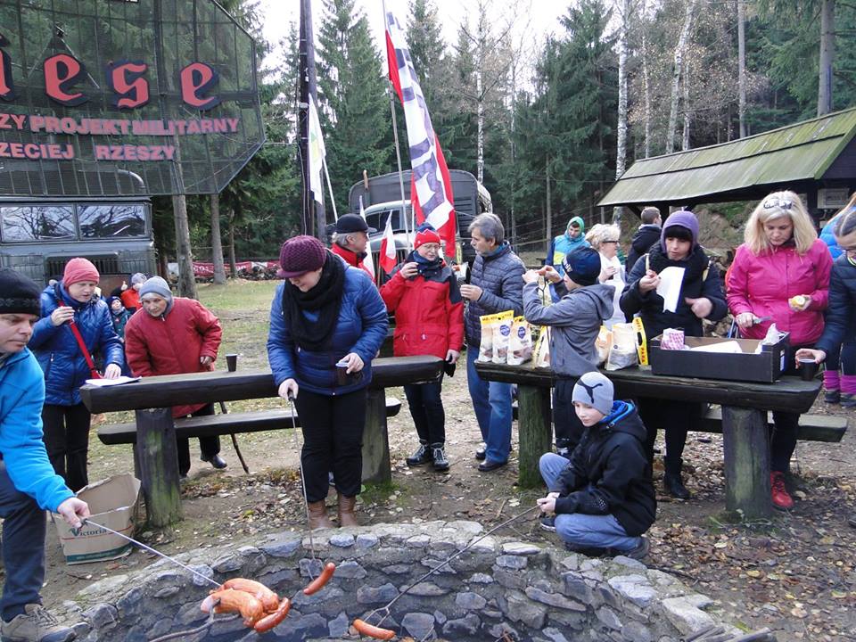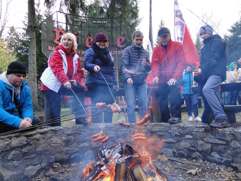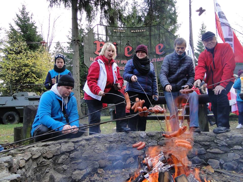 Tegorocznym “obchodom niepodległościowym” poza dobrym nastrojom i pozytywnemu nastawieniu, towarzyszył przejmujący chłodny wiatr, dlatego też dla wszystkich “wędrowców” organizator przygotował ognisko, przy którym można było ogrzać się, upiec smaczne kiełbaski oraz napić się gorącej kawy i herbaty.
