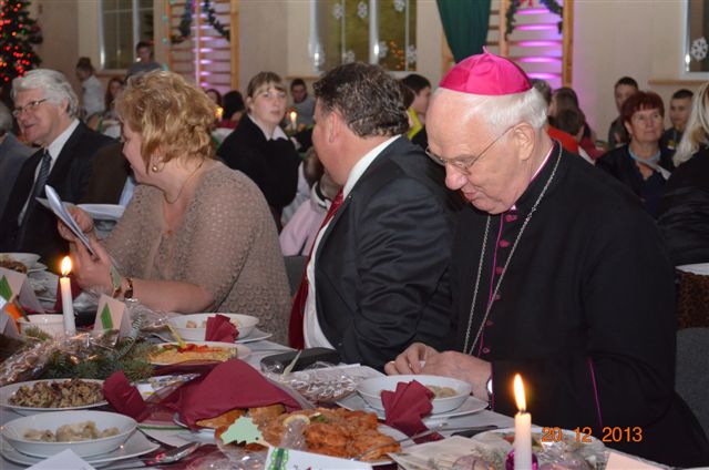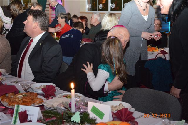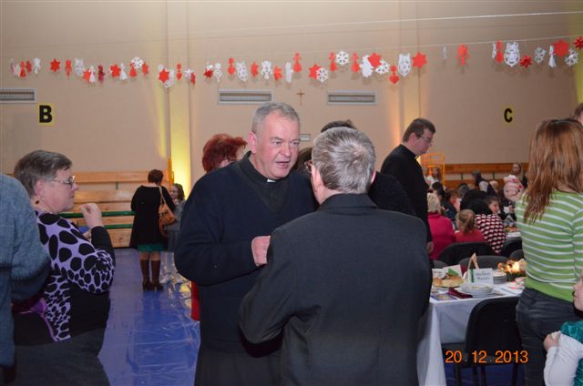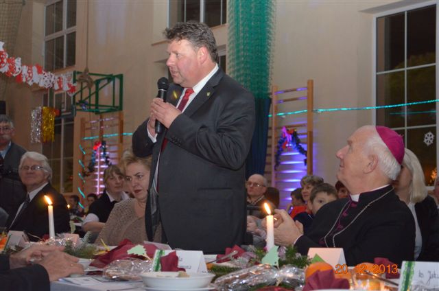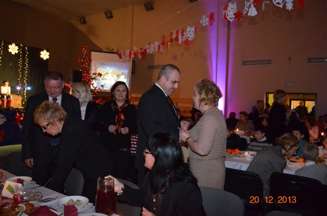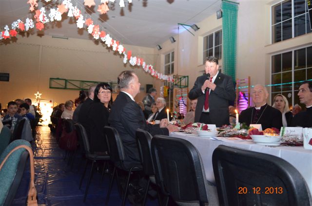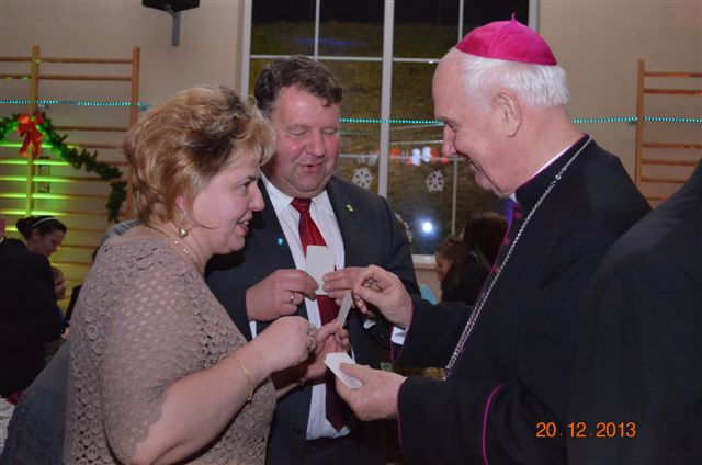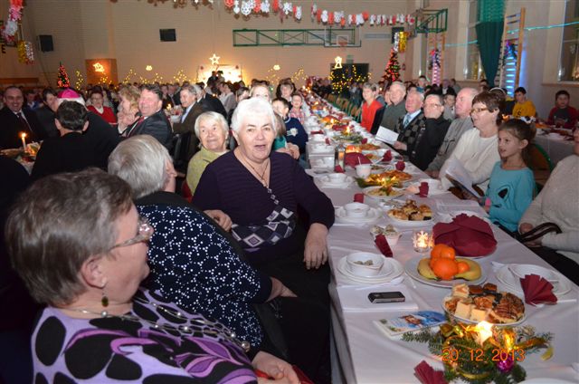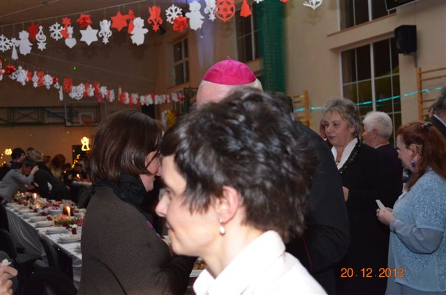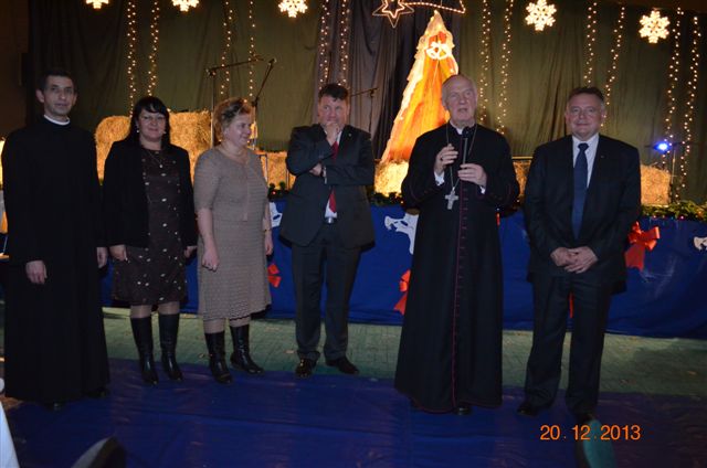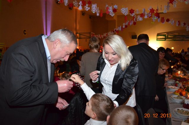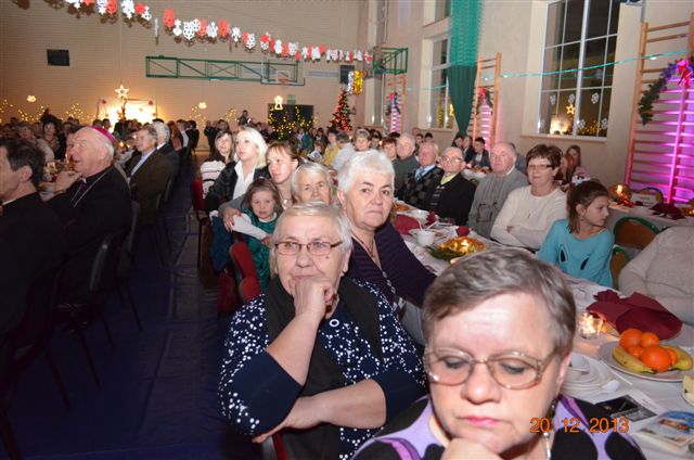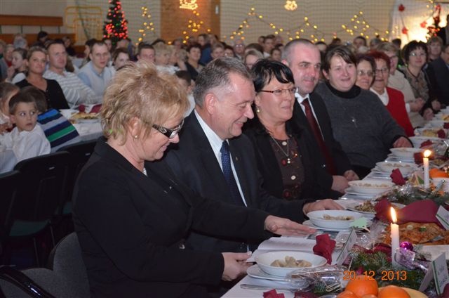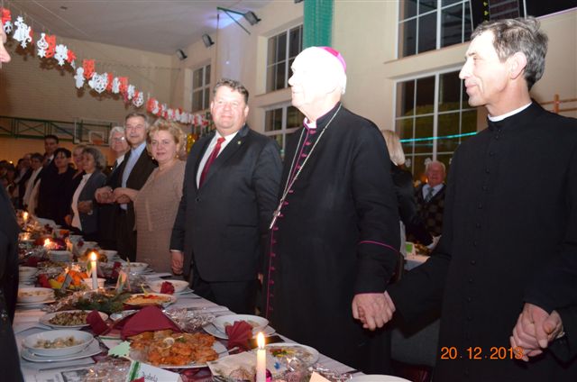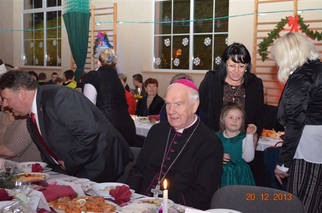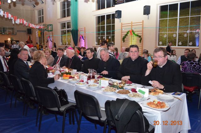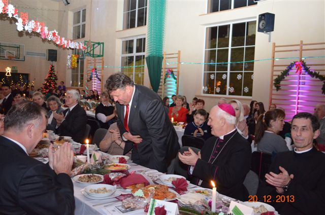 20 grudnia 2013 r. Mszą Świętą celebrowaną przez Jego Ekscelencję Księdza Biskupa Ignacego Deca wraz z księżmi z naszej gminy – ks. Stefanem Łobodzińskim, ks. Zygmuntem Mielczarkiem, ks. Jarosławem Zabłockim, rozpoczęło się Bożonarodzeniowe Spotkanie Opłatkowe w Gminie Walim. Przy ołtarzu asystowały szkolne oraz strażackie poczty sztandarowe. Na hali sportowej, przy pięknie zastawionych stołach, do wspólnej kolacji wigilijnej zasiedli mieszkańcy gminy wraz z zaproszonymi gośćmi – księdzem Biskupem Ignacym Decem, księżmi z parafii gminnych, Posłanką na Sejm Izabelą Katarzyną Mrzygłocką przedstawicielami Starostwa Powiatowego – Starostą Józefem Piksą oraz radnym powiatowym Krzysztofem Kwiatkowskim. Przy stołach zasiedli także radni Rady Gminy Walim, sołtysi naszych miejscowości, przyjaciele gminy, przedstawiciele Zjednoczonych Pasją oraz lokalni twórcy. Młodzież i dzieci z Zespołu Szkół w Walimiu przygotowały jasełka upamiętniające Narodzenie Pana, ale także przypominające, że Boże Narodzenie to czas zadumy i refleksji nad naszym życiem, ale przede wszystkim czas pokoju, zgody i miłości. Jego Ekscelencja Ksiądz Biskup Ignacy Dec złożył wszystkim najserdeczniejsze życzenia świąteczne, zaprosił do symbolicznego połamania się opłatkiem i wspólnej wieczerzy.Młodzież z Zespołu Placówek Resocjalizacyjnych w Walimiu przekazała, na ręce Wójta Gminy Walim Adama Hausmana, światełko betlejemskie. Było też wspólne kolędowanie. Ksiądz Biskup, zaintonował przy akompaniamencie pianina, nasze piękne polskie kolędy. Tradycyjnie, mieszkańcy obecni na Spotkaniu Opłatkowym, otrzymali stroiki świąteczne.