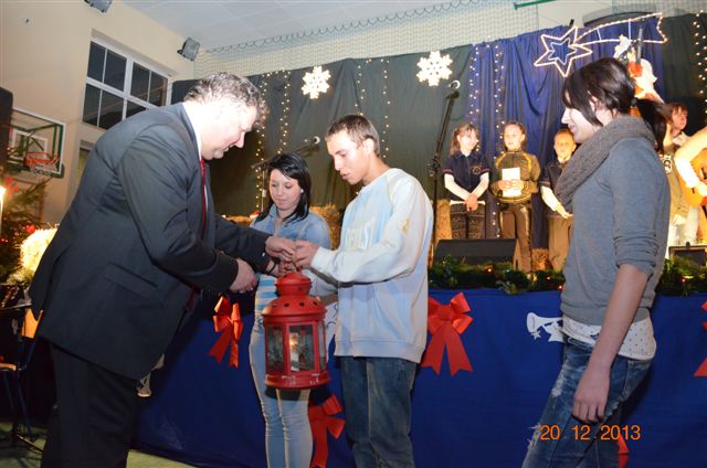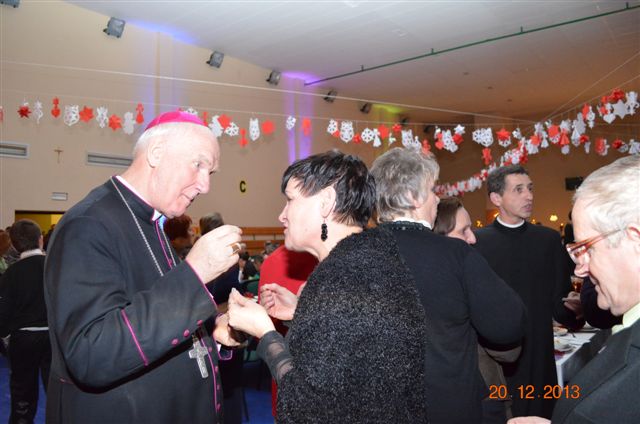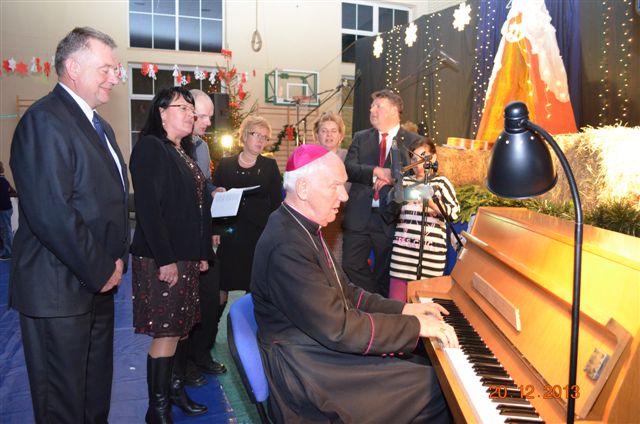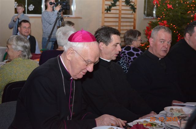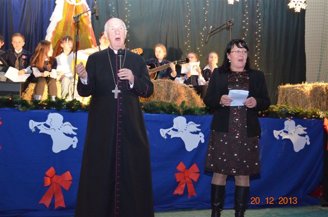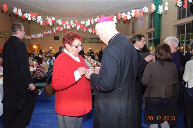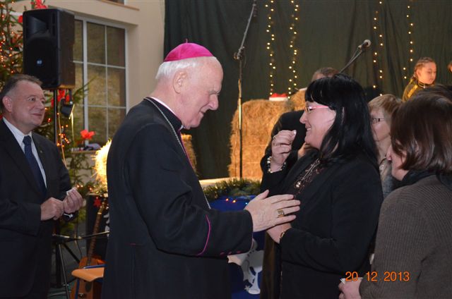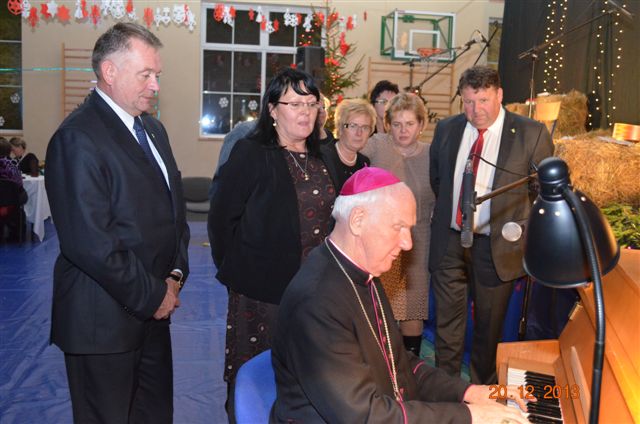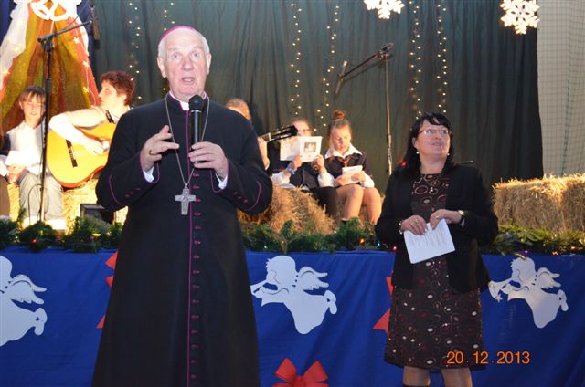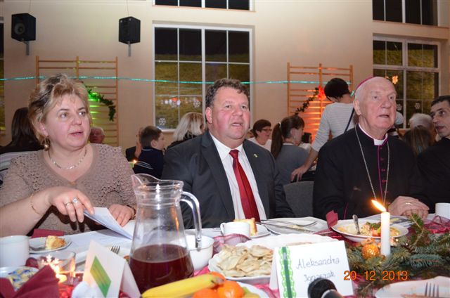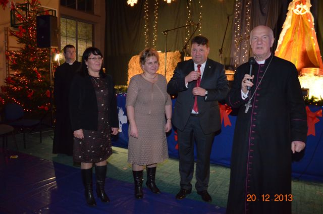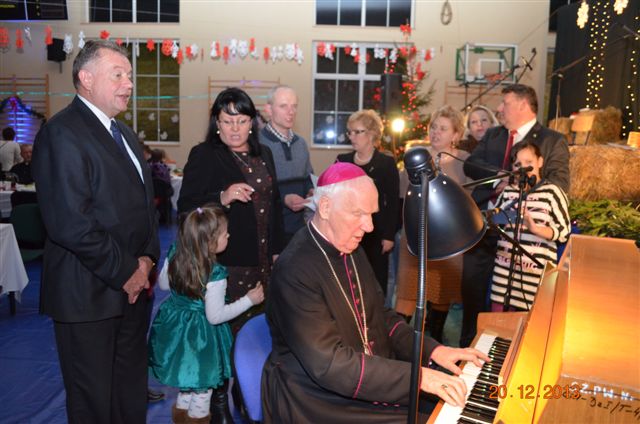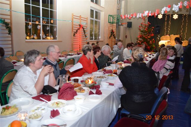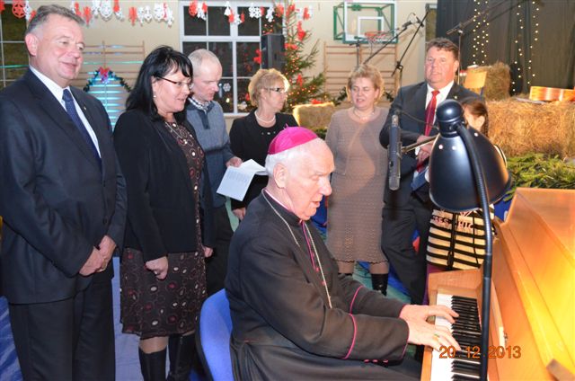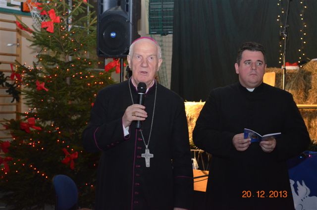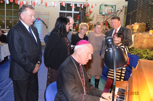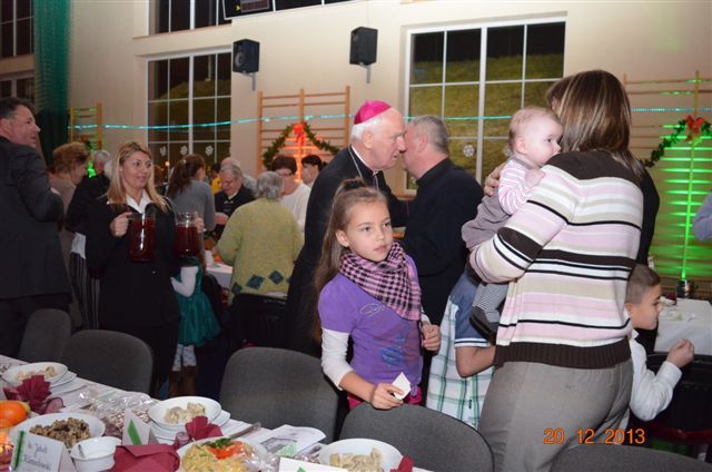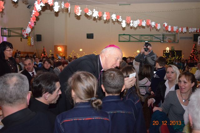 20 grudnia 2013 r. Mszą Świętą celebrowaną przez Jego Ekscelencję Księdza Biskupa Ignacego Deca wraz z księżmi z naszej gminy – ks. Stefanem Łobodzińskim, ks. Zygmuntem Mielczarkiem, ks. Jarosławem Zabłockim, rozpoczęło się Bożonarodzeniowe Spotkanie Opłatkowe w Gminie Walim. Przy ołtarzu asystowały szkolne oraz strażackie poczty sztandarowe. Na hali sportowej, przy pięknie zastawionych stołach, do wspólnej kolacji wigilijnej zasiedli mieszkańcy gminy wraz z zaproszonymi gośćmi – księdzem Biskupem Ignacym Decem, księżmi z parafii gminnych, Posłanką na Sejm Izabelą Katarzyną Mrzygłocką przedstawicielami Starostwa Powiatowego – Starostą Józefem Piksą oraz radnym powiatowym Krzysztofem Kwiatkowskim. Przy stołach zasiedli także radni Rady Gminy Walim, sołtysi naszych miejscowości, przyjaciele gminy, przedstawiciele Zjednoczonych Pasją oraz lokalni twórcy. Młodzież i dzieci z Zespołu Szkół w Walimiu przygotowały jasełka upamiętniające Narodzenie Pana, ale także przypominające, że Boże Narodzenie to czas zadumy i refleksji nad naszym życiem, ale przede wszystkim czas pokoju, zgody i miłości. Jego Ekscelencja Ksiądz Biskup Ignacy Dec złożył wszystkim najserdeczniejsze życzenia świąteczne, zaprosił do symbolicznego połamania się opłatkiem i wspólnej wieczerzy.Młodzież z Zespołu Placówek Resocjalizacyjnych w Walimiu przekazała, na ręce Wójta Gminy Walim Adama Hausmana, światełko betlejemskie. Było też wspólne kolędowanie. Ksiądz Biskup, zaintonował przy akompaniamencie pianina, nasze piękne polskie kolędy. Tradycyjnie, mieszkańcy obecni na Spotkaniu Opłatkowym, otrzymali stroiki świąteczne.