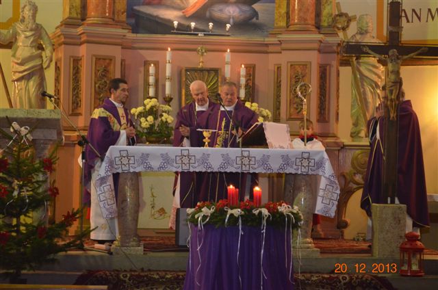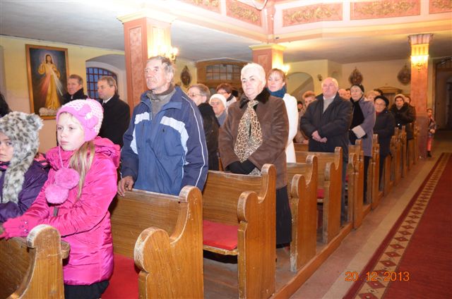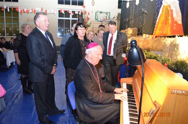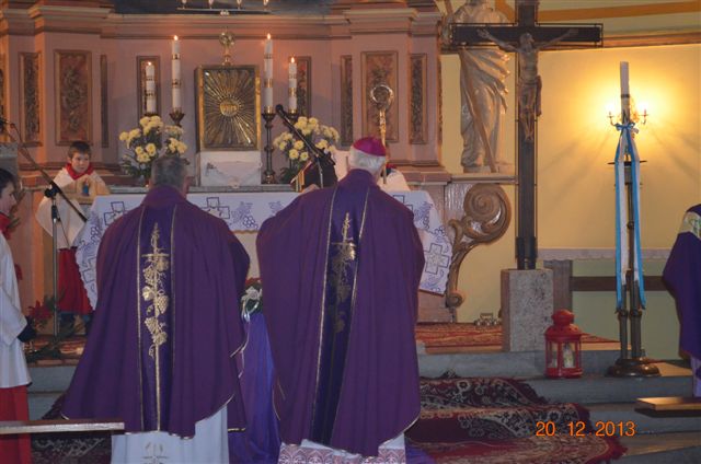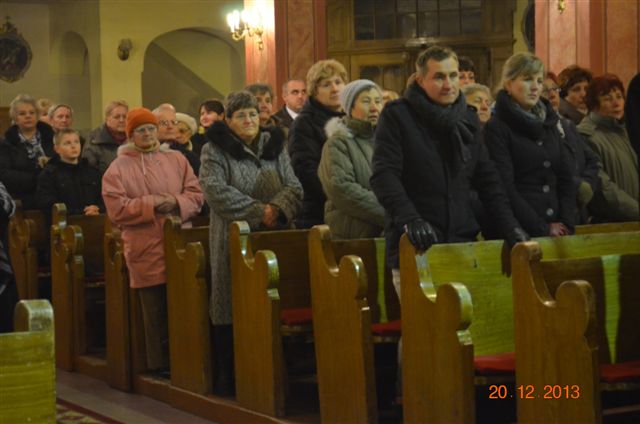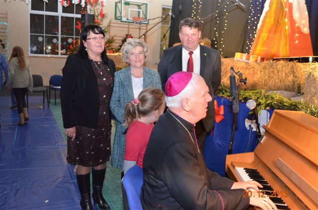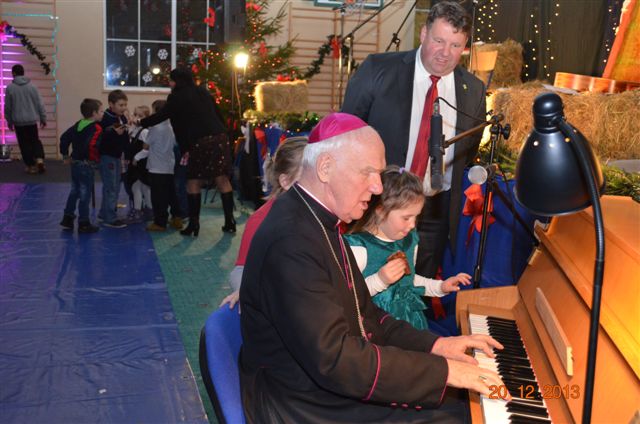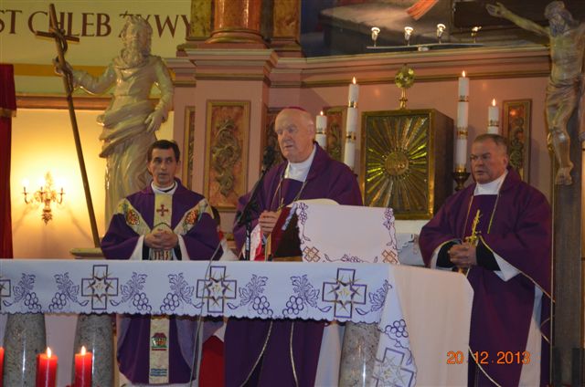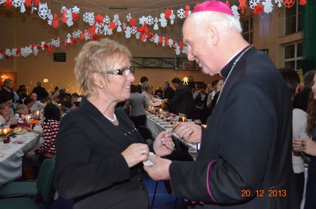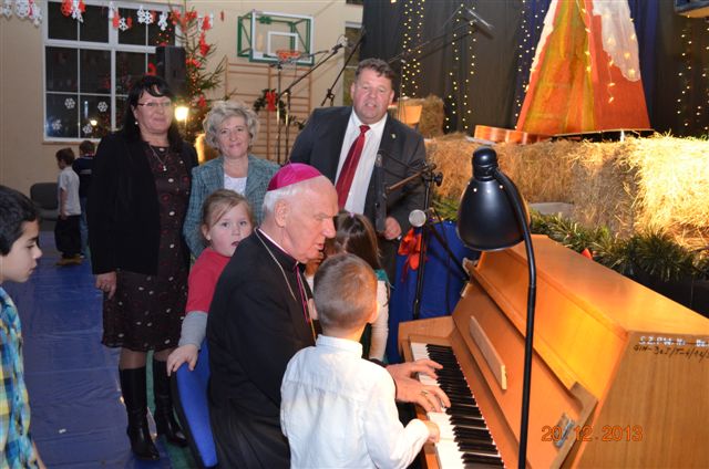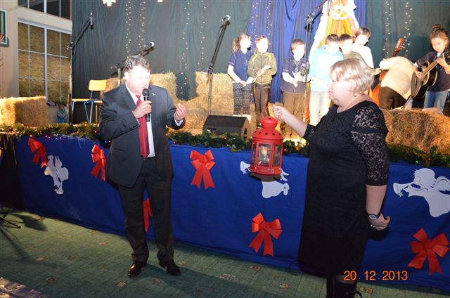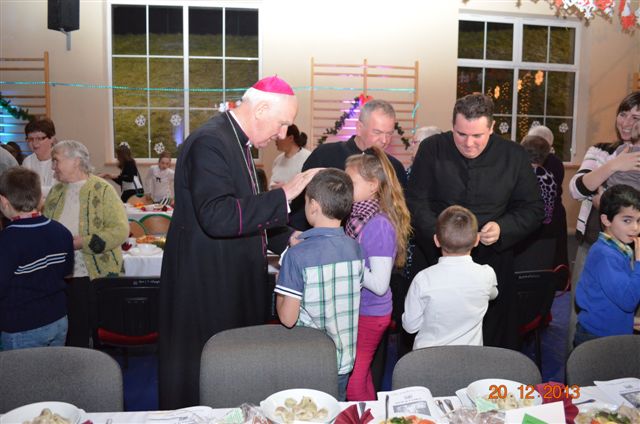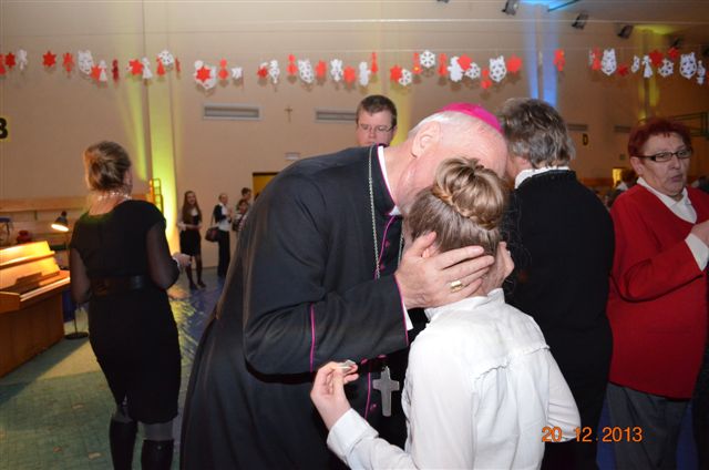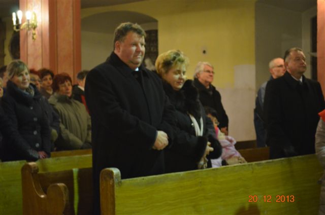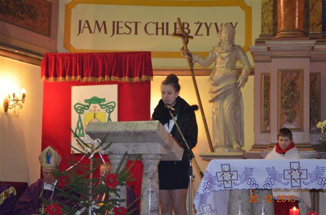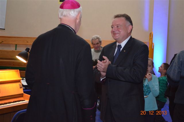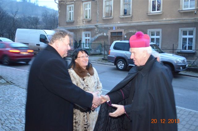 20 grudnia 2013 r. Mszą Świętą celebrowaną przez Jego Ekscelencję Księdza Biskupa Ignacego Deca wraz z księżmi z naszej gminy – ks. Stefanem Łobodzińskim, ks. Zygmuntem Mielczarkiem, ks. Jarosławem Zabłockim, rozpoczęło się Bożonarodzeniowe Spotkanie Opłatkowe w Gminie Walim. Przy ołtarzu asystowały szkolne oraz strażackie poczty sztandarowe. Na hali sportowej, przy pięknie zastawionych stołach, do wspólnej kolacji wigilijnej zasiedli mieszkańcy gminy wraz z zaproszonymi gośćmi – księdzem Biskupem Ignacym Decem, księżmi z parafii gminnych, Posłanką na Sejm Izabelą Katarzyną Mrzygłocką przedstawicielami Starostwa Powiatowego – Starostą Józefem Piksą oraz radnym powiatowym Krzysztofem Kwiatkowskim. Przy stołach zasiedli także radni Rady Gminy Walim, sołtysi naszych miejscowości, przyjaciele gminy, przedstawiciele Zjednoczonych Pasją oraz lokalni twórcy. Młodzież i dzieci z Zespołu Szkół w Walimiu przygotowały jasełka upamiętniające Narodzenie Pana, ale także przypominające, że Boże Narodzenie to czas zadumy i refleksji nad naszym życiem, ale przede wszystkim czas pokoju, zgody i miłości. Jego Ekscelencja Ksiądz Biskup Ignacy Dec złożył wszystkim najserdeczniejsze życzenia świąteczne, zaprosił do symbolicznego połamania się opłatkiem i wspólnej wieczerzy.Młodzież z Zespołu Placówek Resocjalizacyjnych w Walimiu przekazała, na ręce Wójta Gminy Walim Adama Hausmana, światełko betlejemskie. Było też wspólne kolędowanie. Ksiądz Biskup, zaintonował przy akompaniamencie pianina, nasze piękne polskie kolędy. Tradycyjnie, mieszkańcy obecni na Spotkaniu Opłatkowym, otrzymali stroiki świąteczne.