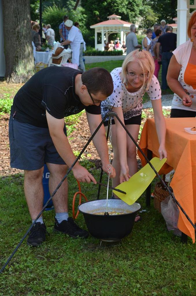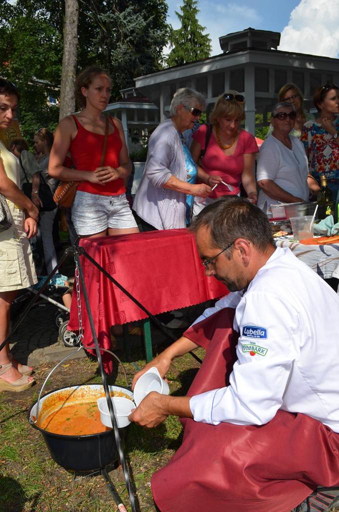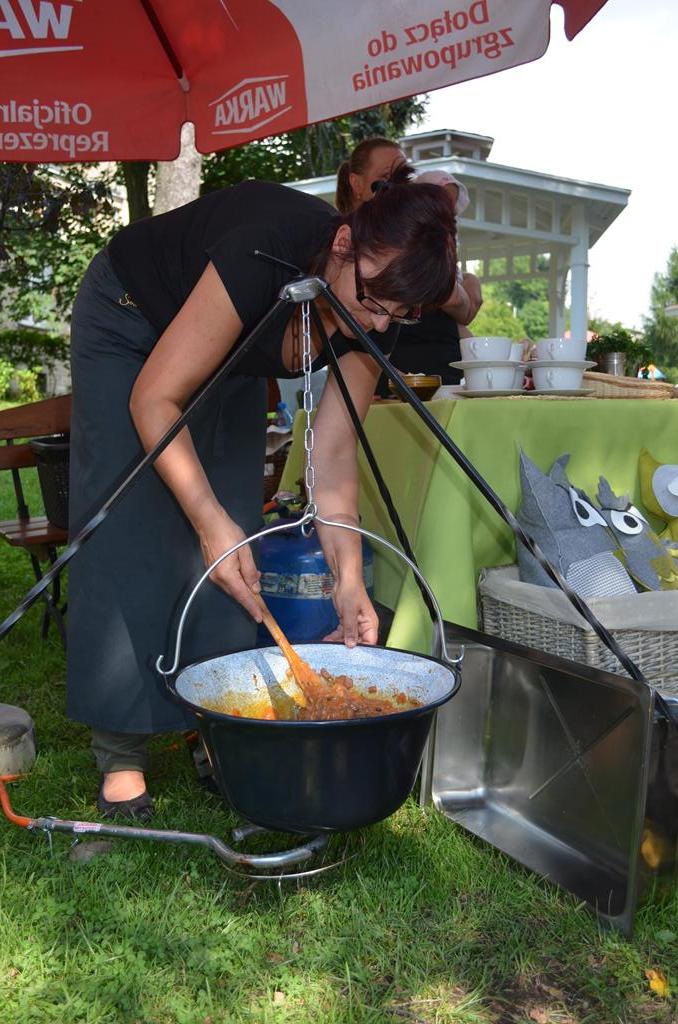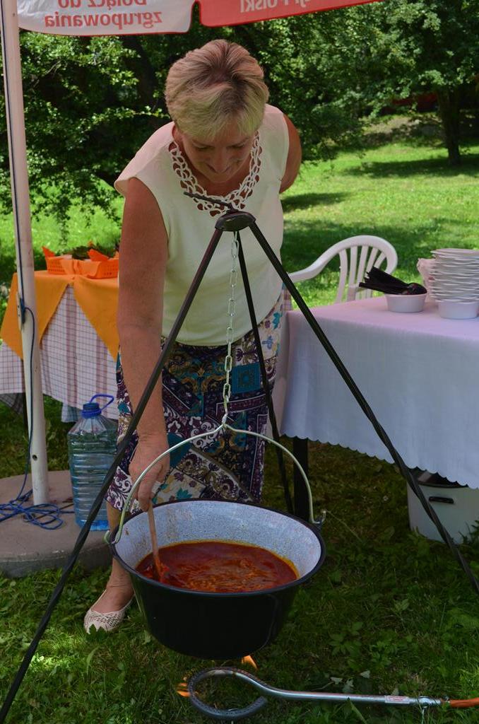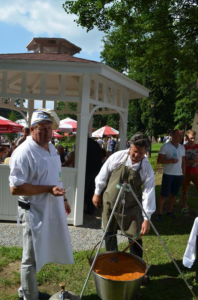 Przy pięknej słonecznej aurze, w Parku Jordanowskim w Walimiu w ubiegłą sobotę po raz drugi odbył się Sowiogórski Festiwal Gulaszu. Zapach gotujących się w bograczach gulaszy przyciągnął wielu smakoszy tej wyśmienitej potrawy. Uczestnicy konkursu na najsmaczniejszy gulasz żwawo uwijali się przy swoich kociołkach, aby na godzinę 16.00 potrawa była gotowa. Wtedy też nastąpiło smakowanie wszystkich gulaszy przez uczestników, a także przez jury. Wydano ponad 4 tysiące porcji gulaszu! Poza konkursem startowała grupa naszych przyjaciół z Węgier z Harkakötöny, gotując tradycyjny gulasz węgierski oraz Wójt Gminy Walim z swoim gulaszem doprawionym lubczykiem. Można było zjeść gulasz tradycyjny, mięsny, ale także z warzywami, z dziczyzną a nawet posmakować gulaszu z łososia i owoców morza.