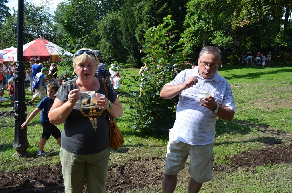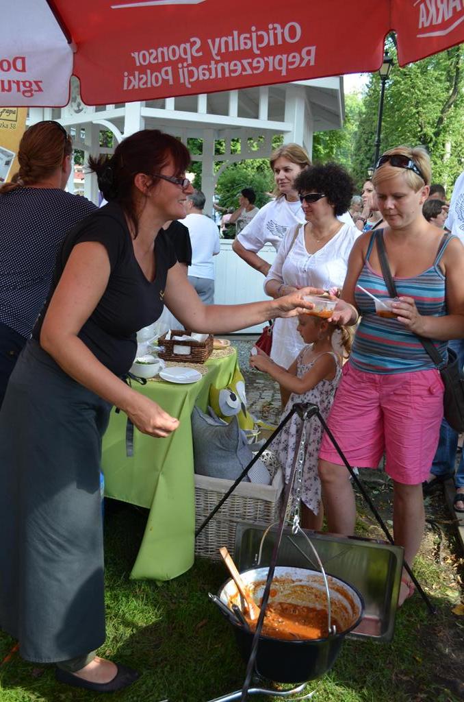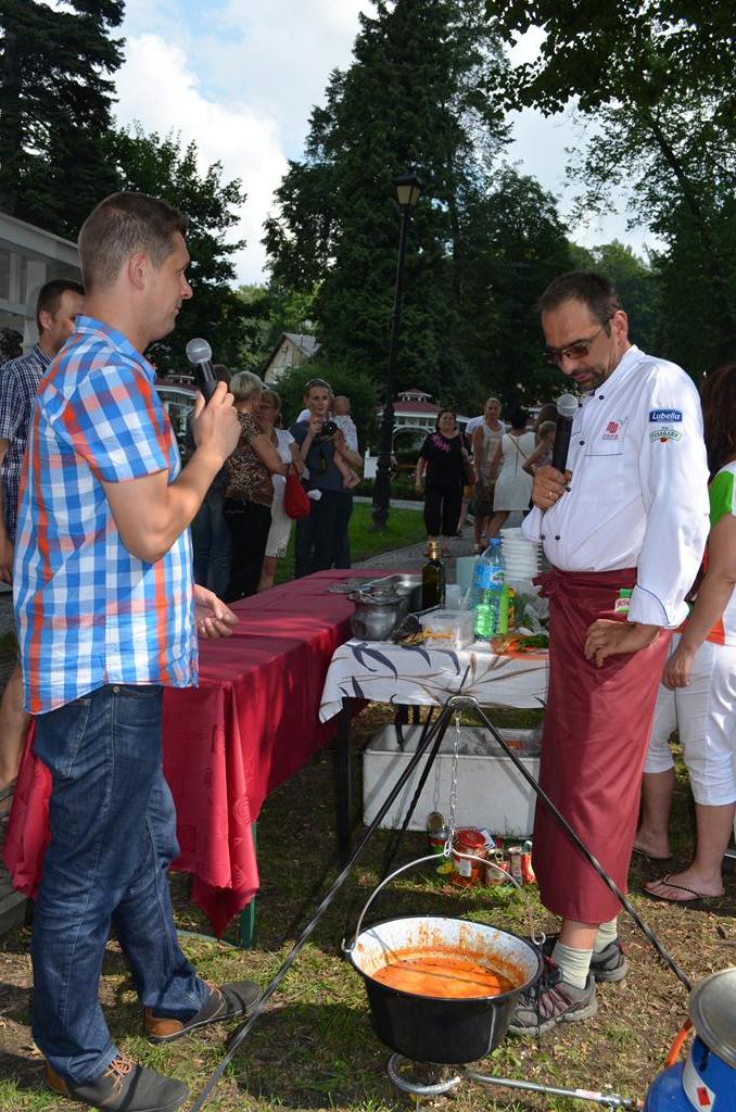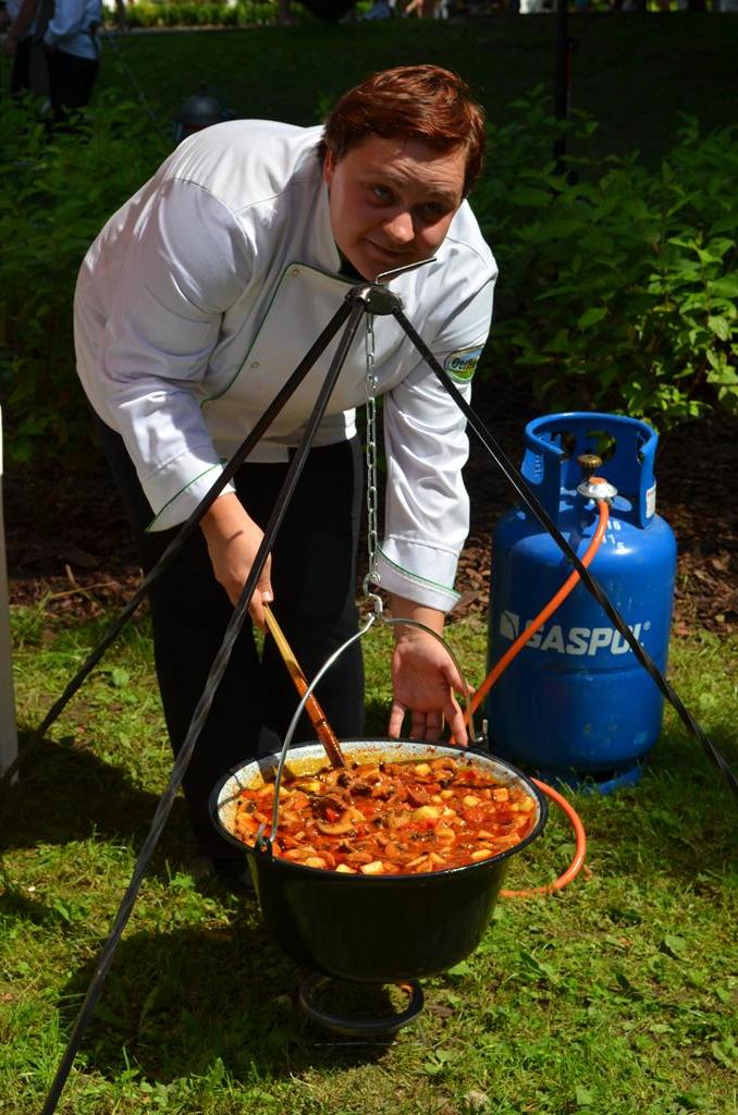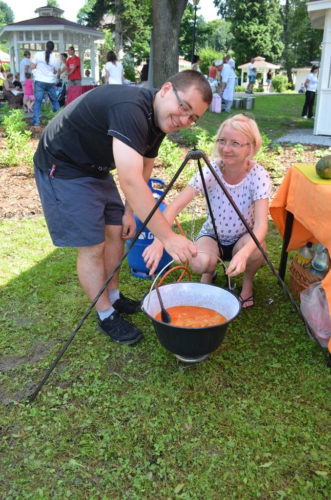 Przy pięknej słonecznej aurze, w Parku Jordanowskim w Walimiu w ubiegłą sobotę po raz drugi odbył się Sowiogórski Festiwal Gulaszu. Zapach gotujących się w bograczach gulaszy przyciągnął wielu smakoszy tej wyśmienitej potrawy. Uczestnicy konkursu na najsmaczniejszy gulasz żwawo uwijali się przy swoich kociołkach, aby na godzinę 16.00 potrawa była gotowa. Wtedy też nastąpiło smakowanie wszystkich gulaszy przez uczestników, a także przez jury. Wydano ponad 4 tysiące porcji gulaszu! Poza konkursem startowała grupa naszych przyjaciół z Węgier z Harkakötöny, gotując tradycyjny gulasz węgierski oraz Wójt Gminy Walim z swoim gulaszem doprawionym lubczykiem. Można było zjeść gulasz tradycyjny, mięsny, ale także z warzywami, z dziczyzną a nawet posmakować gulaszu z łososia i owoców morza.