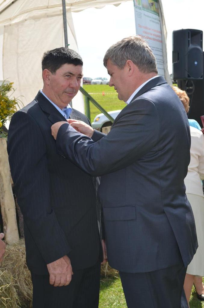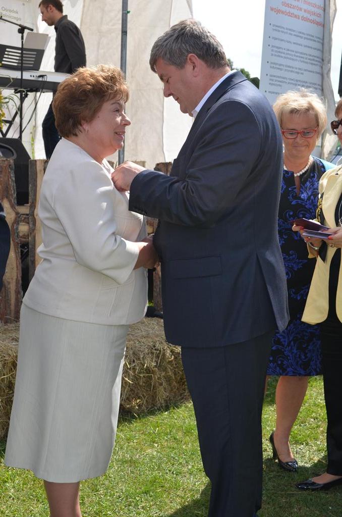 Wiceminister Rolnictwa i Rozwoju Wsi Kazimierz Plocke wraz z Wicewojewodą Ewą Mańkowską, którzy zaszczycili nas swoją obecnością, wręczyli medale „zasłużeni dla rolnictwa” Pani Mariannie Gałkowskiej, Stanisławowi Podwińskiemu oraz Piotrowi Ruchała.