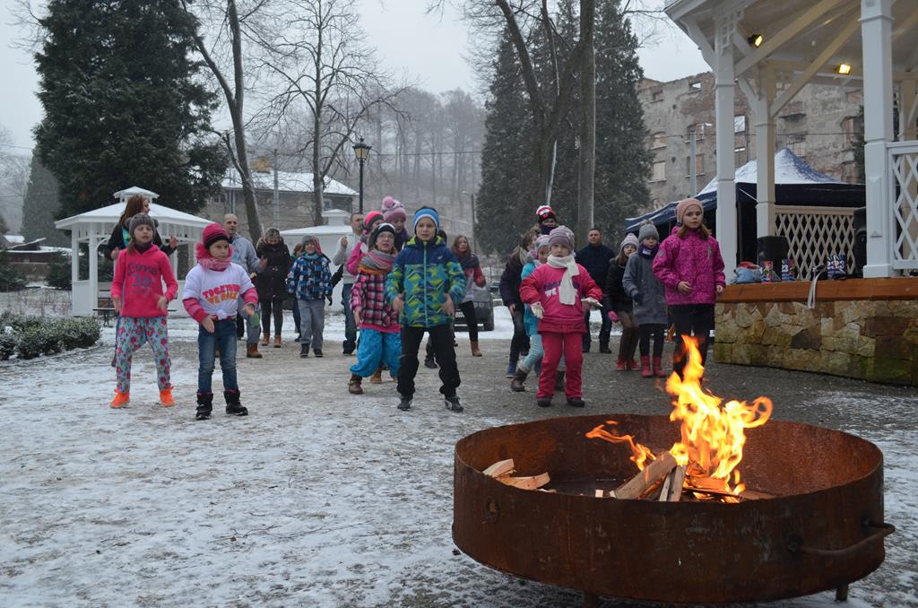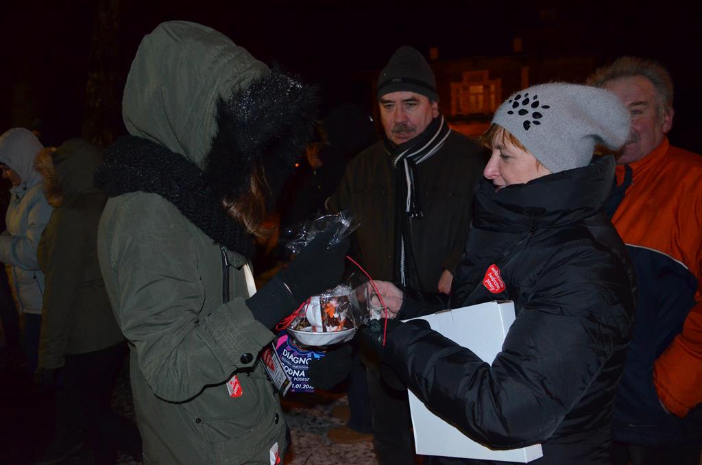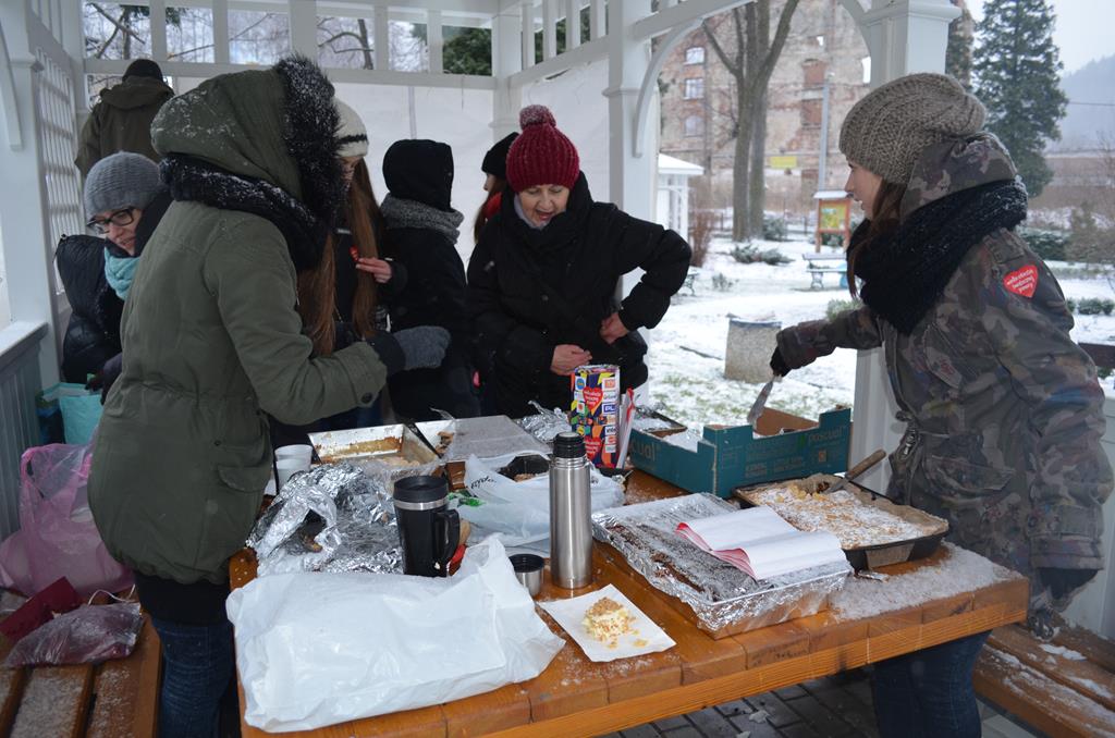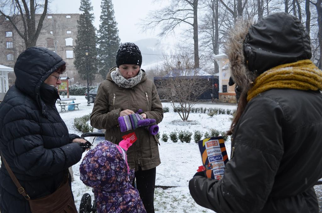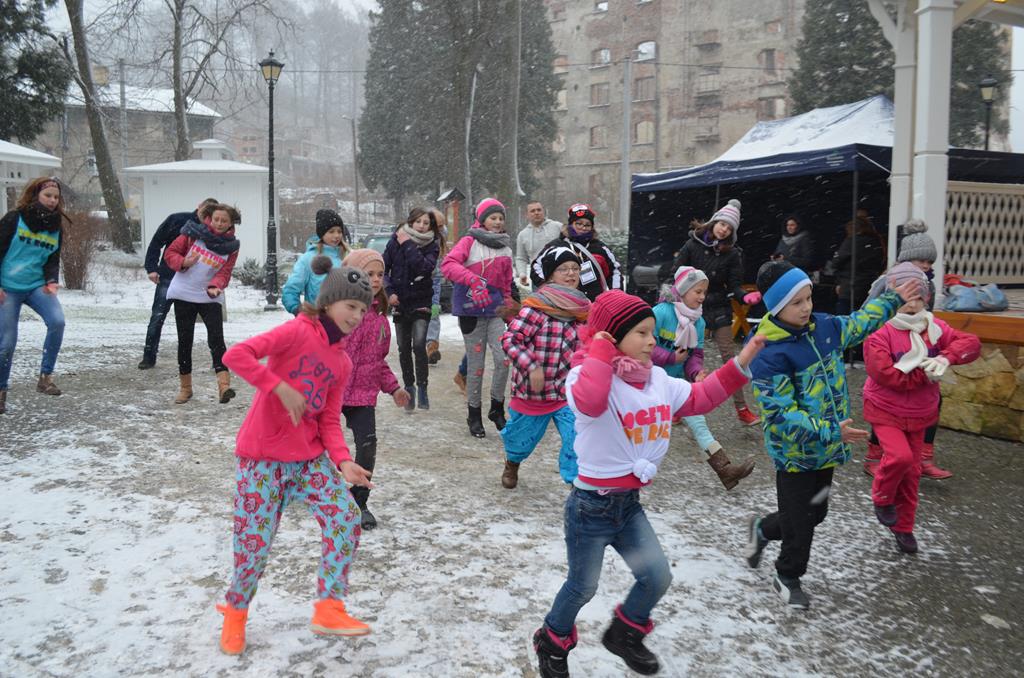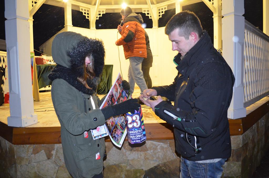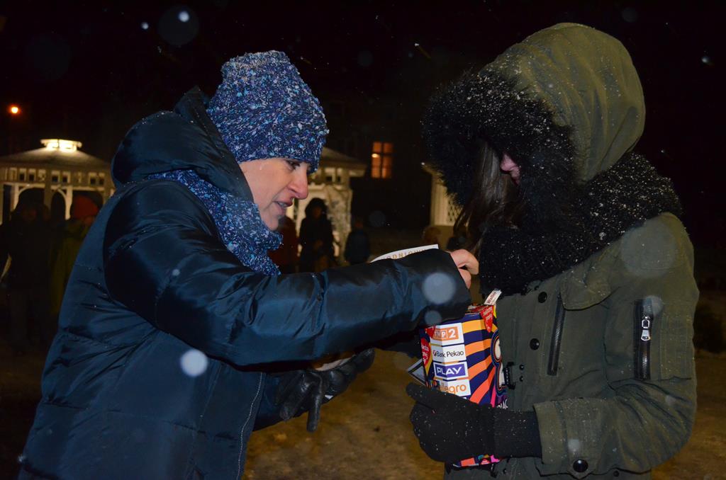 Po godzinie 14.00 w walimskim Parku Jordanowskim- gdzie odbywały się główne wielkoorkiestrowe obchody, zrobiło się niezwykle muzycznie. Najpierw dzięki tanecznym występom grupy Zumba Kids, wspomaganych przez rodziców, które za sprawą pani Beaty Rejek rozgrzewały i zachęcały wszystkich zebranych do wesołych pląsów. Następnie przy płonącym ognisku można było pośpiewać i pokołysać się w rytm utworów wyśpiewywanych przez Krzysztofa Gołębiewskiego. Miłośnicy dobrego jedzenia i pluszaków również mogli znaleźć coś dla siebie. Grono pedagogiczne Zespołu Szkół w Walimiu sprzedawało przepyszne słodkości, dzięki czemu uzbierali kwotę 678,06 zł. Zespół Placówek Resocjalizacyjnych pomagał przy akcji ” Kup misia”. Wszyscy zziębnięci mieli możliwość rozgrzania się kiełbasą wprost z grilla oraz gorącą kawą i herbatą serwowaną przez właścicieli Karczmy Rycerskiej Zamek Grodno. Duży “zastrzyk” gotówki podczas tegorocznego finału wpłynął z aukcji, zasilając naszą pulę kwotą 2.325,76 zł.