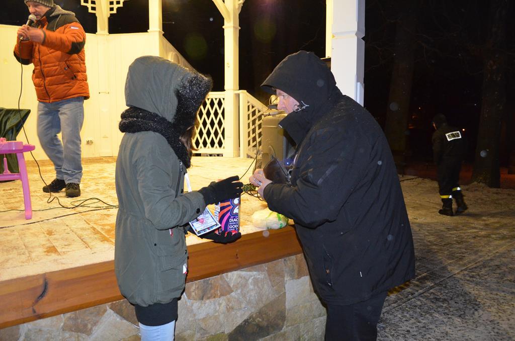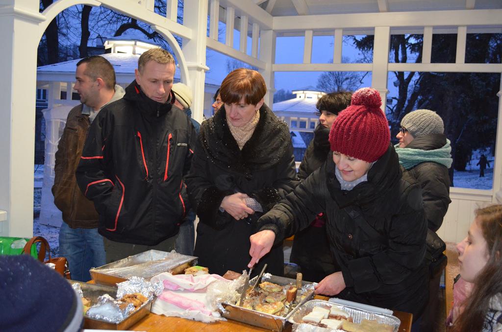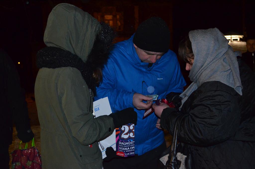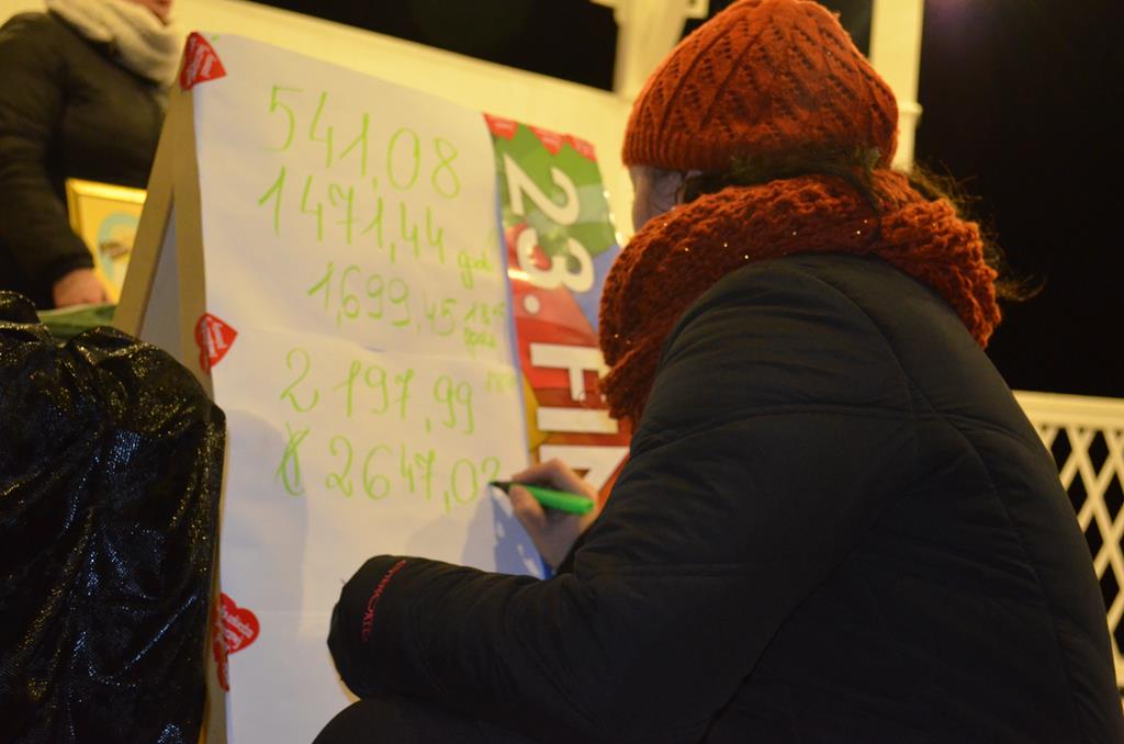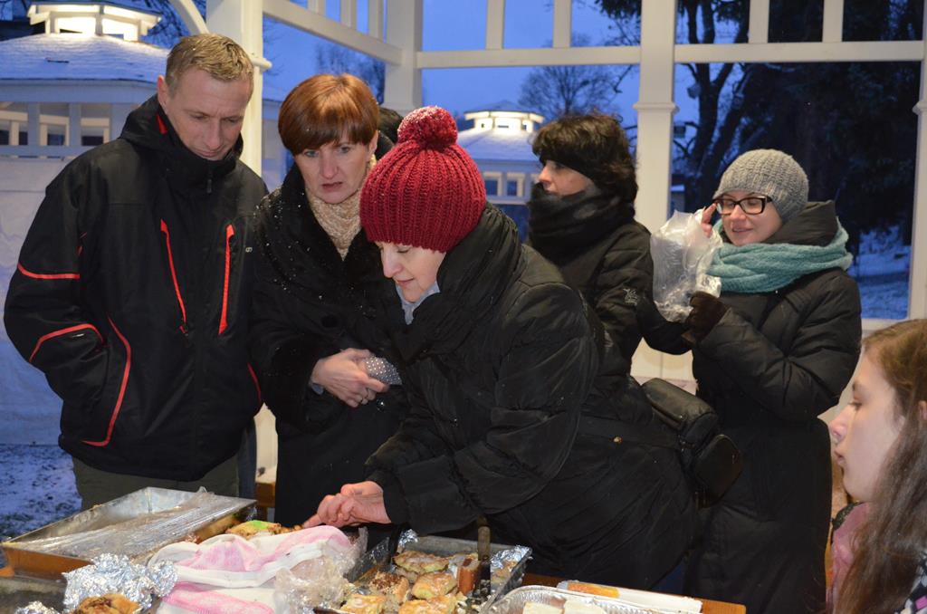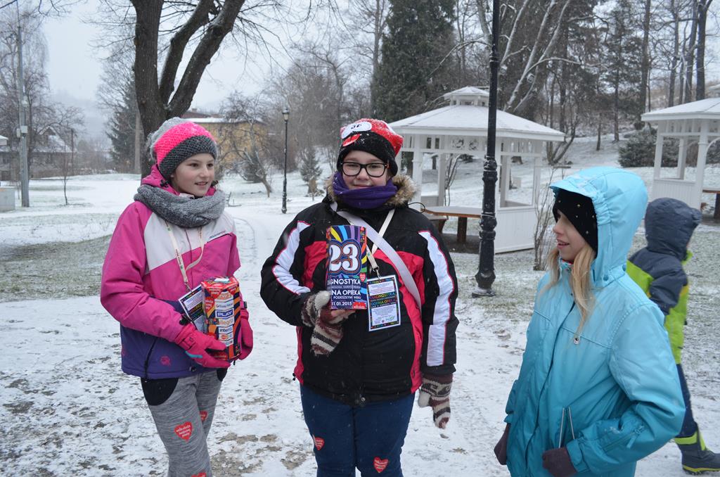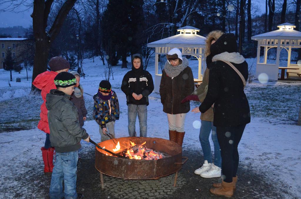 Po godzinie 14.00 w walimskim Parku Jordanowskim- gdzie odbywały się główne wielkoorkiestrowe obchody, zrobiło się niezwykle muzycznie. Najpierw dzięki tanecznym występom grupy Zumba Kids, wspomaganych przez rodziców, które za sprawą pani Beaty Rejek rozgrzewały i zachęcały wszystkich zebranych do wesołych pląsów. Następnie przy płonącym ognisku można było pośpiewać i pokołysać się w rytm utworów wyśpiewywanych przez Krzysztofa Gołębiewskiego. Miłośnicy dobrego jedzenia i pluszaków również mogli znaleźć coś dla siebie. Grono pedagogiczne Zespołu Szkół w Walimiu sprzedawało przepyszne słodkości, dzięki czemu uzbierali kwotę 678,06 zł. Zespół Placówek Resocjalizacyjnych pomagał przy akcji ” Kup misia”. Wszyscy zziębnięci mieli możliwość rozgrzania się kiełbasą wprost z grilla oraz gorącą kawą i herbatą serwowaną przez właścicieli Karczmy Rycerskiej Zamek Grodno. Duży “zastrzyk” gotówki podczas tegorocznego finału wpłynął z aukcji, zasilając naszą pulę kwotą 2.325,76 zł.