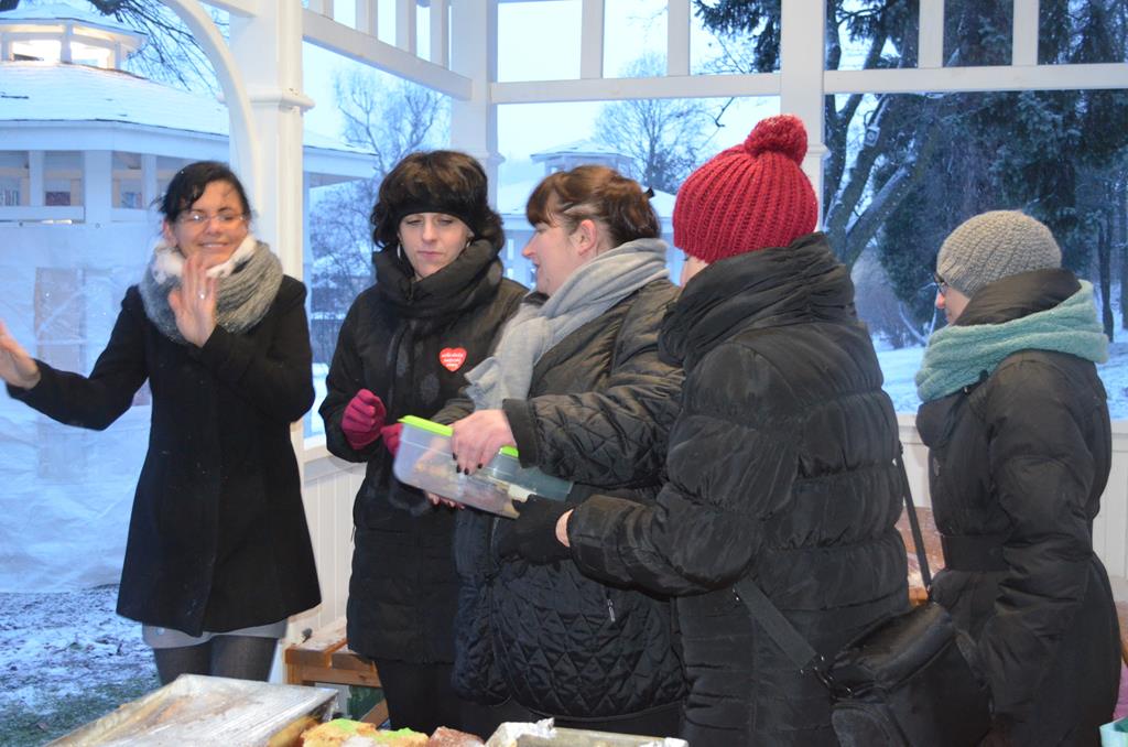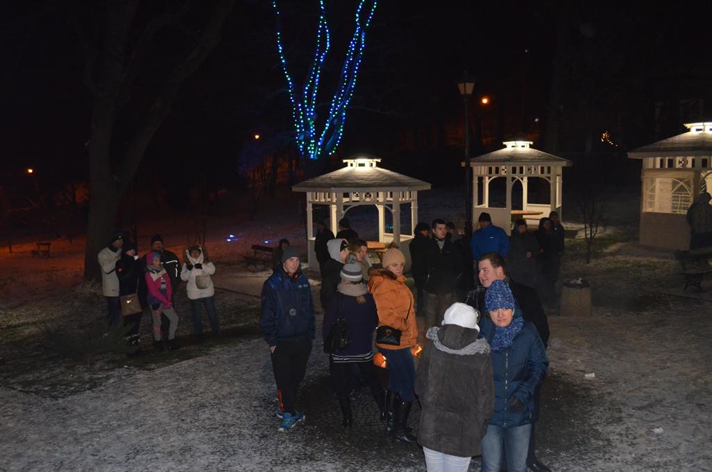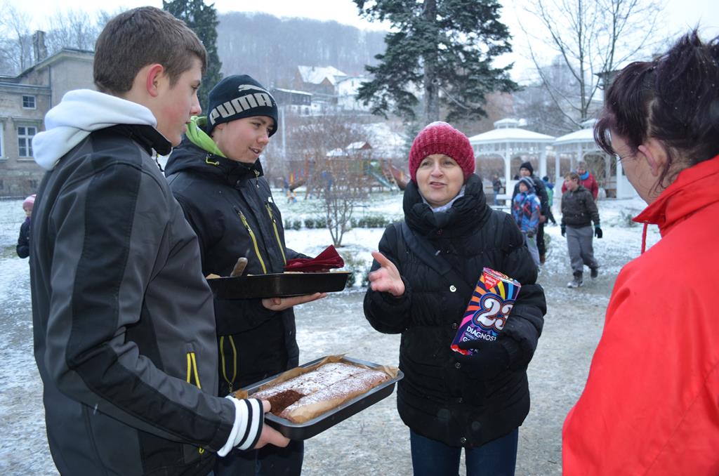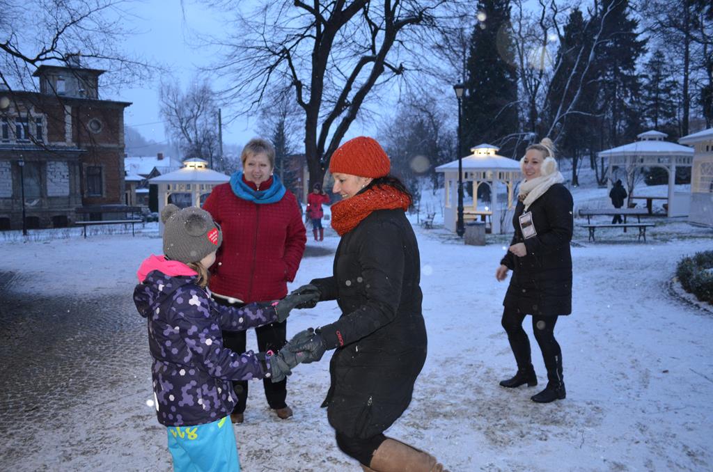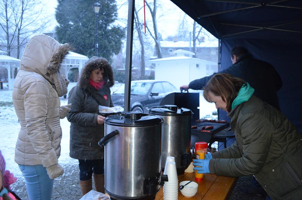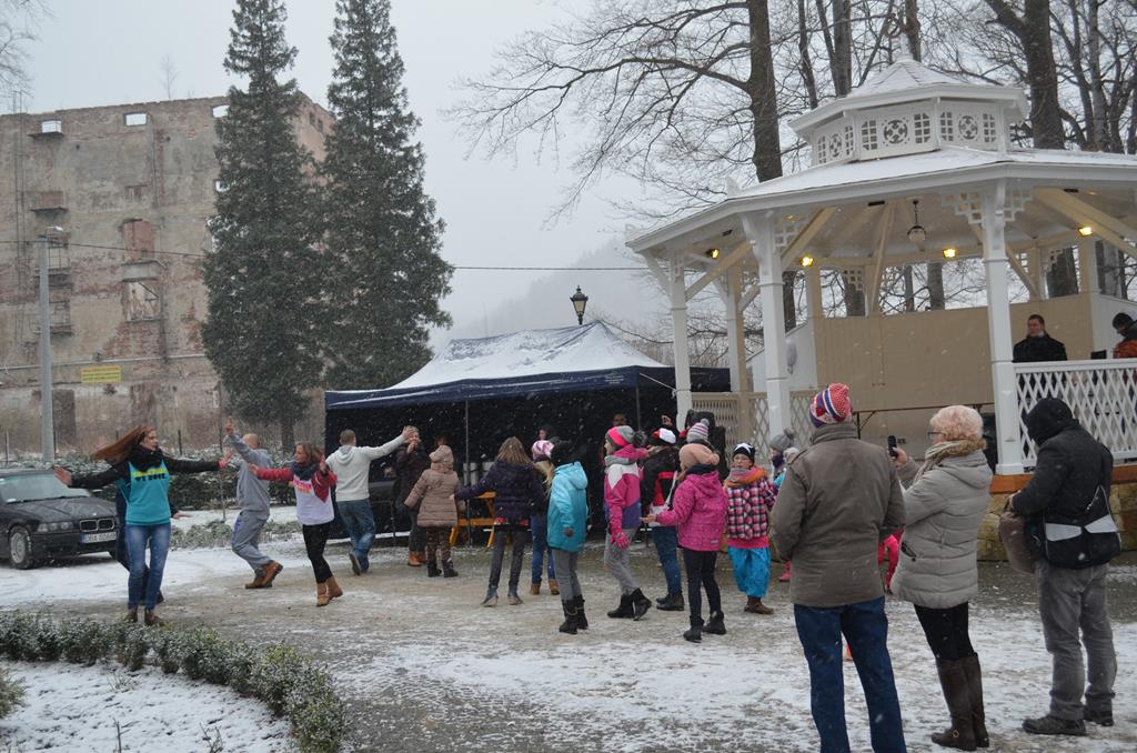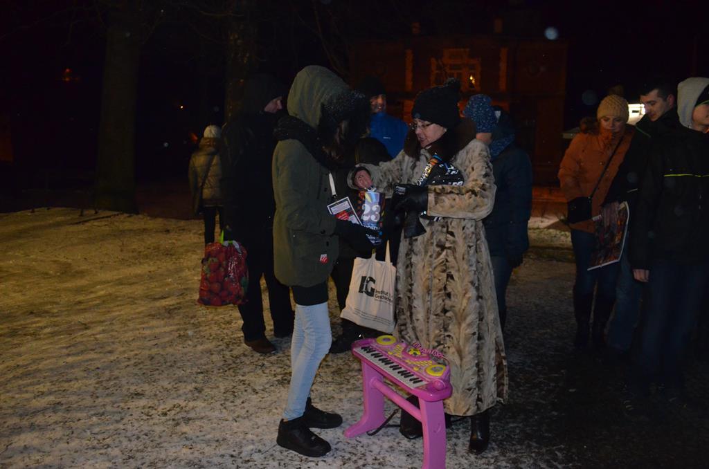 Po godzinie 14.00 w walimskim Parku Jordanowskim- gdzie odbywały się główne wielkoorkiestrowe obchody, zrobiło się niezwykle muzycznie. Najpierw dzięki tanecznym występom grupy Zumba Kids, wspomaganych przez rodziców, które za sprawą pani Beaty Rejek rozgrzewały i zachęcały wszystkich zebranych do wesołych pląsów. Następnie przy płonącym ognisku można było pośpiewać i pokołysać się w rytm utworów wyśpiewywanych przez Krzysztofa Gołębiewskiego. Miłośnicy dobrego jedzenia i pluszaków również mogli znaleźć coś dla siebie. Grono pedagogiczne Zespołu Szkół w Walimiu sprzedawało przepyszne słodkości, dzięki czemu uzbierali kwotę 678,06 zł. Zespół Placówek Resocjalizacyjnych pomagał przy akcji ” Kup misia”. Wszyscy zziębnięci mieli możliwość rozgrzania się kiełbasą wprost z grilla oraz gorącą kawą i herbatą serwowaną przez właścicieli Karczmy Rycerskiej Zamek Grodno. Duży “zastrzyk” gotówki podczas tegorocznego finału wpłynął z aukcji, zasilając naszą pulę kwotą 2.325,76 zł.