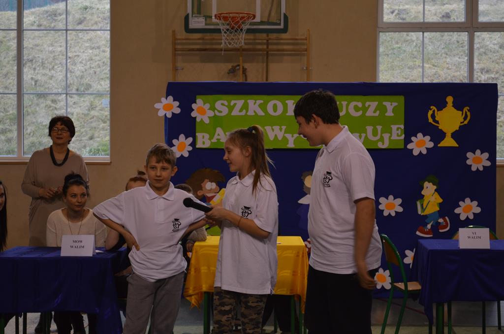 Konkurs sprawdzał zasób wiadomości o Gminie Walim, poziom wiedzy szkolnej oraz sprawność fizyczną. Uczestnicy zabawy rywalizowali między sobą, aż w 17 konkurencjach. Największym aplauzem i dopingiem zebranej publiczności, cieszyła się konkurencja polegająca na przetransportowaniu trzech balonów – bez pomocy rąk. Dodatkowo prowadzący pan Artur Jarczok, widząc poruszenie wśród widowni, zachęcał wszystkich do spróbowania swych sił, w tym pozornie prostym zadaniu. Wszyscy znakomicie się bawili, a atmosfera towarzysząca każdej kolejnej konkurencji, mobilizowała zawodników do walki o zwycięstwo. Konkurs ten był znakomitą “odskocznią” od dnia codziennego, podczas której uczniowie mogli odpocząć oraz dobrze się bawić w szkole.