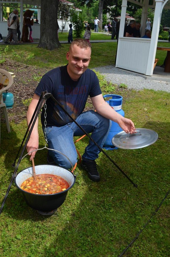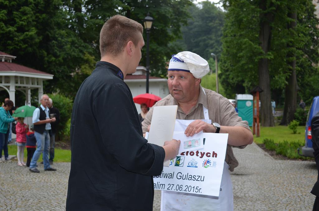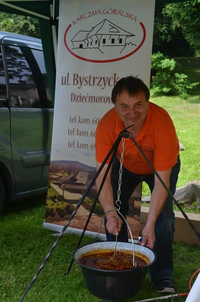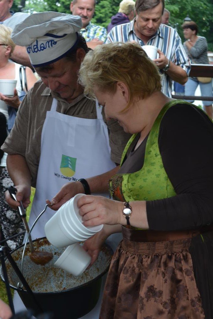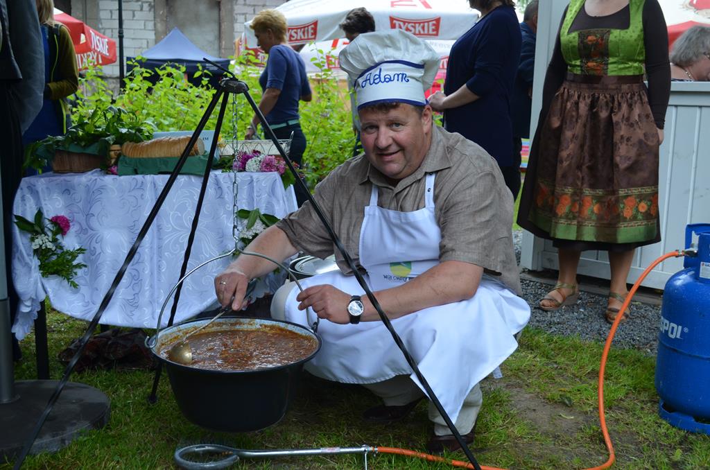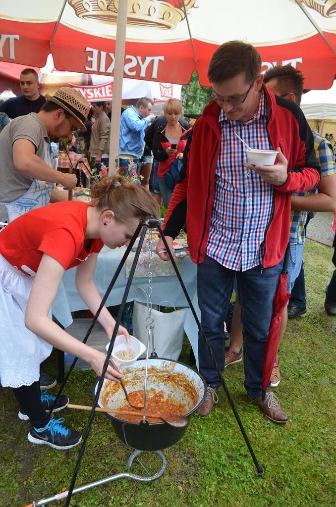 Wójt Gminy Walim Adam Hausman witając wszystkich przybyłych, oficjalnie rozpoczął festiwal, dając tym samym znak uczestnikom konkursu na najlepszy gulasz do przygotowywania wyjątkowych potraw. Podobnie jak w latach ubiegłych nie zabrakło ani chętnych ani pomysłów, gdyż aż przy osiemnastu stanowiskach konkursowych, żwawo uwijano się przy kociołkach, aby punktualnie na godzinę 16:00 potrawy były gotowe. Tradycyjnie poza konkursem, gulasz przygotowywali także nasi węgierscy przyjaciele z partnerskiej gminy Harkakötöny, gotując potrawę pn. “Gulasz Wice Burmistrz”, oraz Wójt Gminy Walim Adam Hausman – serwujący gulasz przyprawiany lubczykiem.