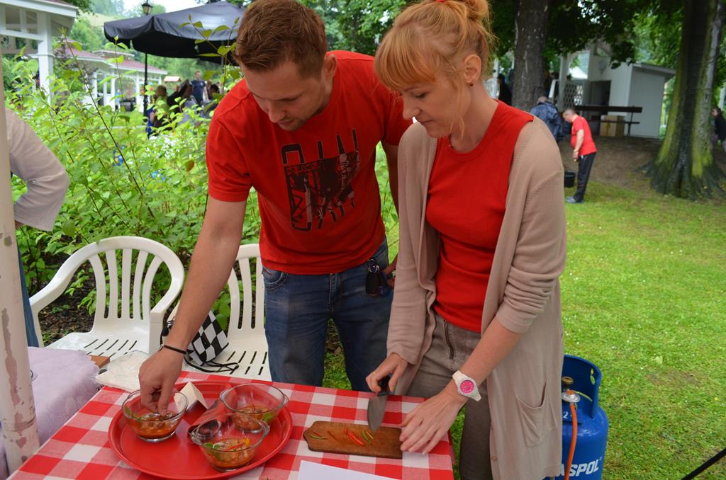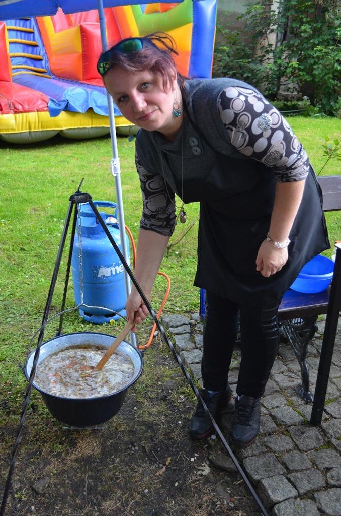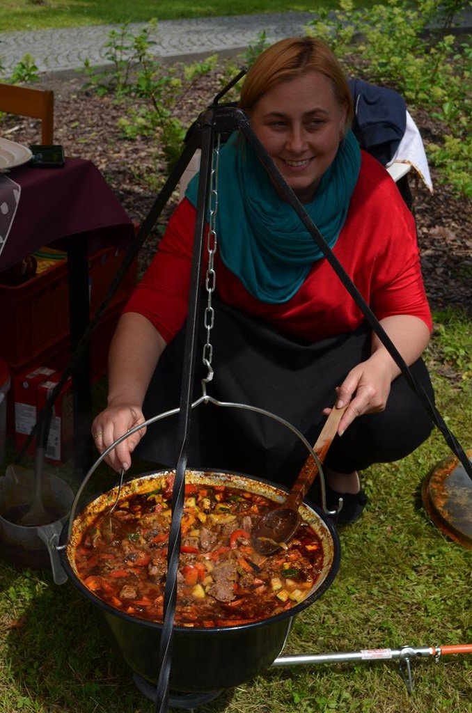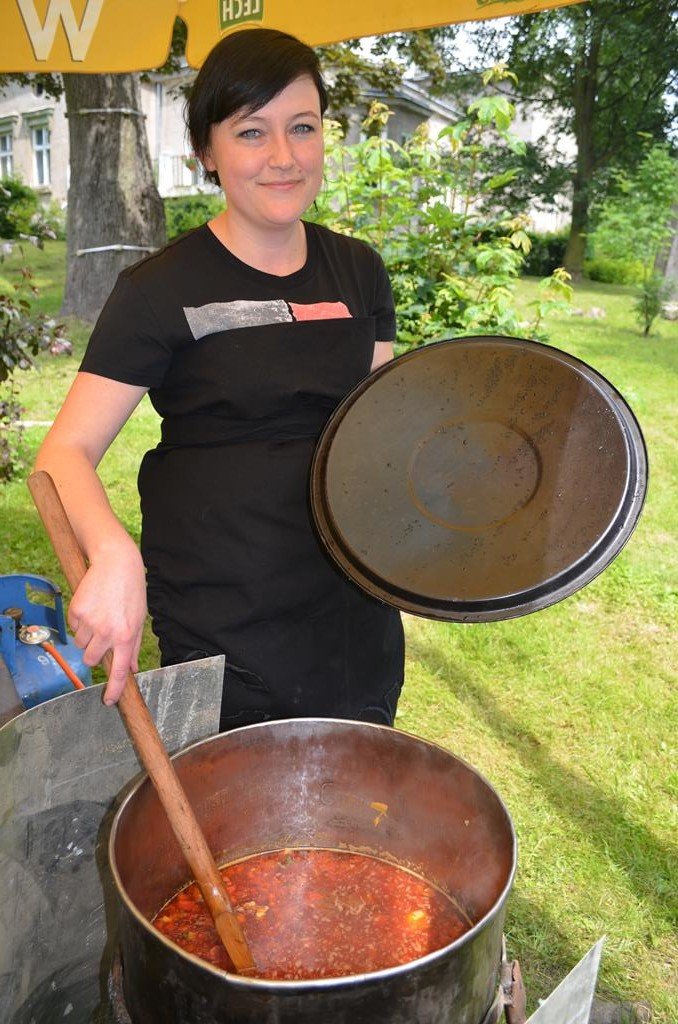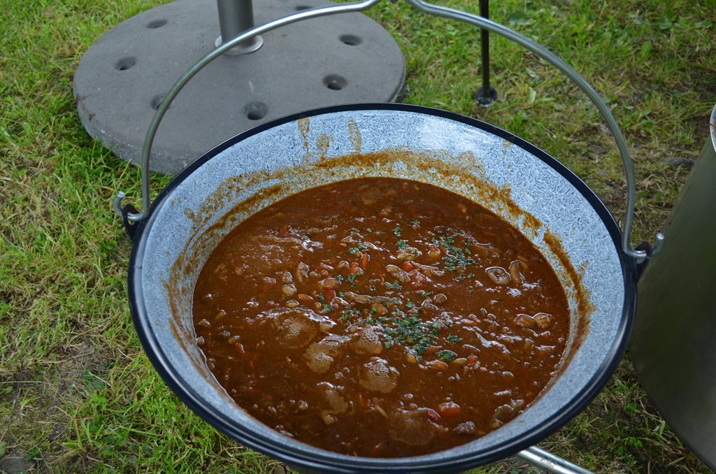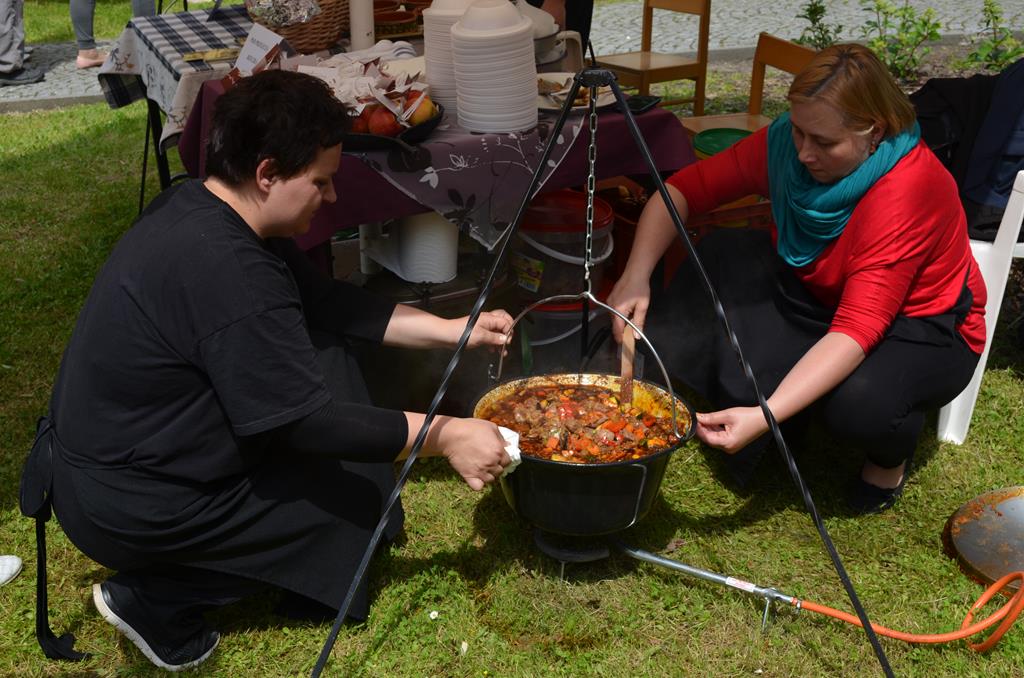 Wójt Gminy Walim Adam Hausman witając wszystkich przybyłych, oficjalnie rozpoczął festiwal, dając tym samym znak uczestnikom konkursu na najlepszy gulasz do przygotowywania wyjątkowych potraw. Podobnie jak w latach ubiegłych nie zabrakło ani chętnych ani pomysłów, gdyż aż przy osiemnastu stanowiskach konkursowych, żwawo uwijano się przy kociołkach, aby punktualnie na godzinę 16:00 potrawy były gotowe. Tradycyjnie poza konkursem, gulasz przygotowywali także nasi węgierscy przyjaciele z partnerskiej gminy Harkakötöny, gotując potrawę pn. “Gulasz Wice Burmistrz”, oraz Wójt Gminy Walim Adam Hausman – serwujący gulasz przyprawiany lubczykiem.