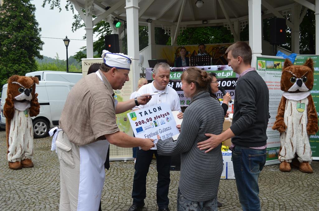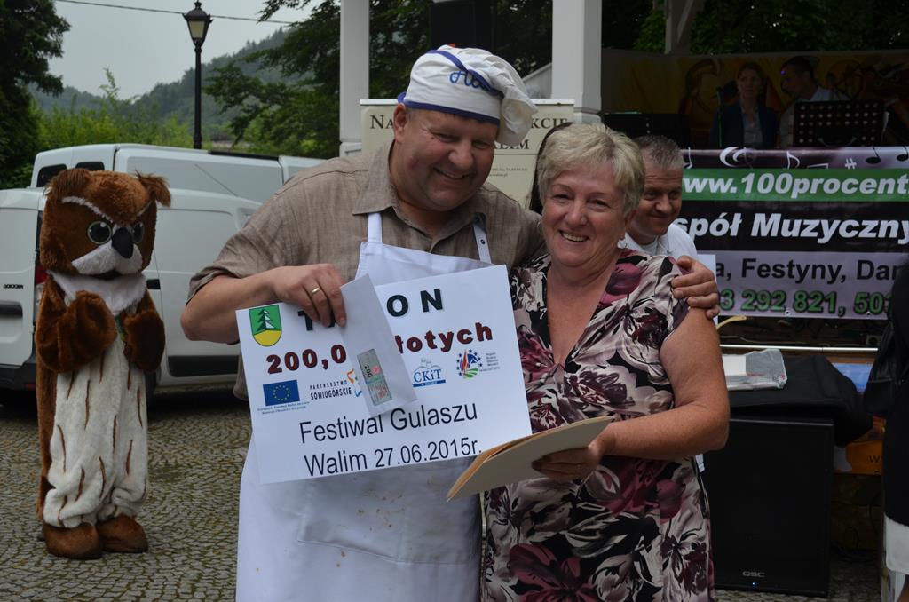 Po dwugodzinnych, pieczołowitych zmaganiach uczestników konkursu, nastąpiło to na co wszyscy z niecierpliwością wyczekiwali, a mianowicie kosztowanie wspaniałych, różnorodnych gulaszy. Wtedy też rozpoczęła się niezwykle trudna praca jury, które do skosztowania miało potrawy pod niezwykle wymyślnymi nazwami, tj. Gulasz: Pod Przełęczą, z Michałówki, Jordanowski, Eko-Jagniak, Ostry Kociołek, Serce na Talerzu, Pałacowa rozkosz z sarniny, Gulasz po sąsiedzku, 4×4, z Huberta, Staropolski z nutką ziół sowiogórskich, Kocioł gospodyni, Gulasz Andzi, Coś Świńskiego, Gulasz po Zagórsku, Jasi, Z wieprzowiny, czy też Zielonogórski gulasz myśliwego. Ostatecznie pierwsze miejsce jury przyznało wielokrotnej zwyciężczyni różnorodnych konkursów kulinarnych pani Stanisławie Ryl z Zagórza Śląskiego. Drugie miejsce zajęła pani Zofia Sokolnicka z Kolc, natomiast trzecie miejsce zdobyła ubiegłoroczna zwyciężczyni pani Anna Sałapatek z Michałkowej. Wszyscy uczestnicy otrzymali talony o wartości 200 zł ufundowane przez Centrum Kultury i Turystyki w Walimiu, natomiast zwyciężczynie wspaniałe nagrody rzeczowe zakupione w ramach środków unijnych, pozyskanych przez LGD ” Partnerstwo Sowiogórskie”.